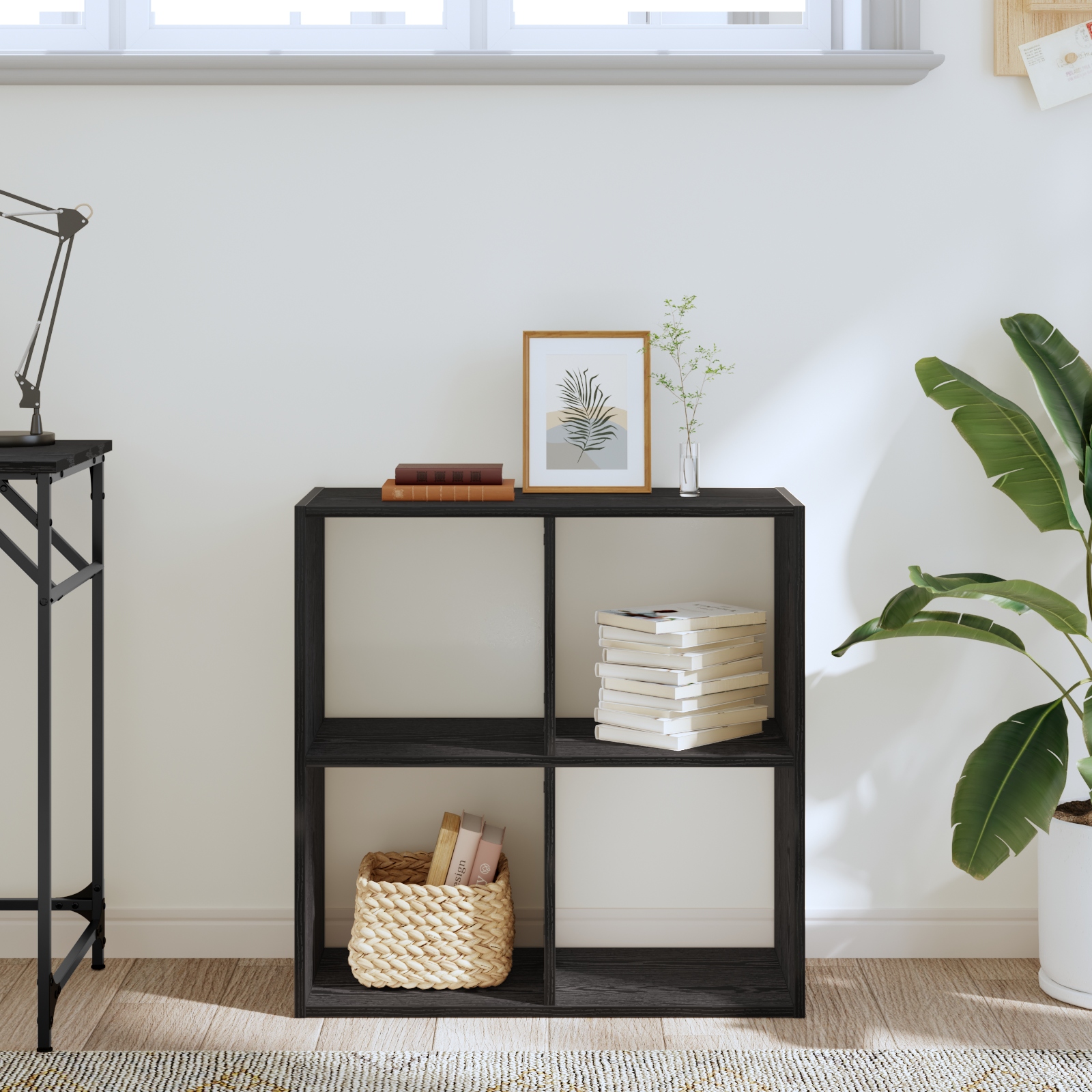 Tento knižničný kabinet je šikovný a štýlový kúsok, ktorý splní tvoje úložné potreby v rôznych priestoroch. Skvelý na obývačky, kancelárie či knižnice, jeho chic čierna dubová povrchová úprava sa hodí k akémukoľvek dekoru a poskytuje ti dosť priestoru na knihy a dekoratívne predmety.