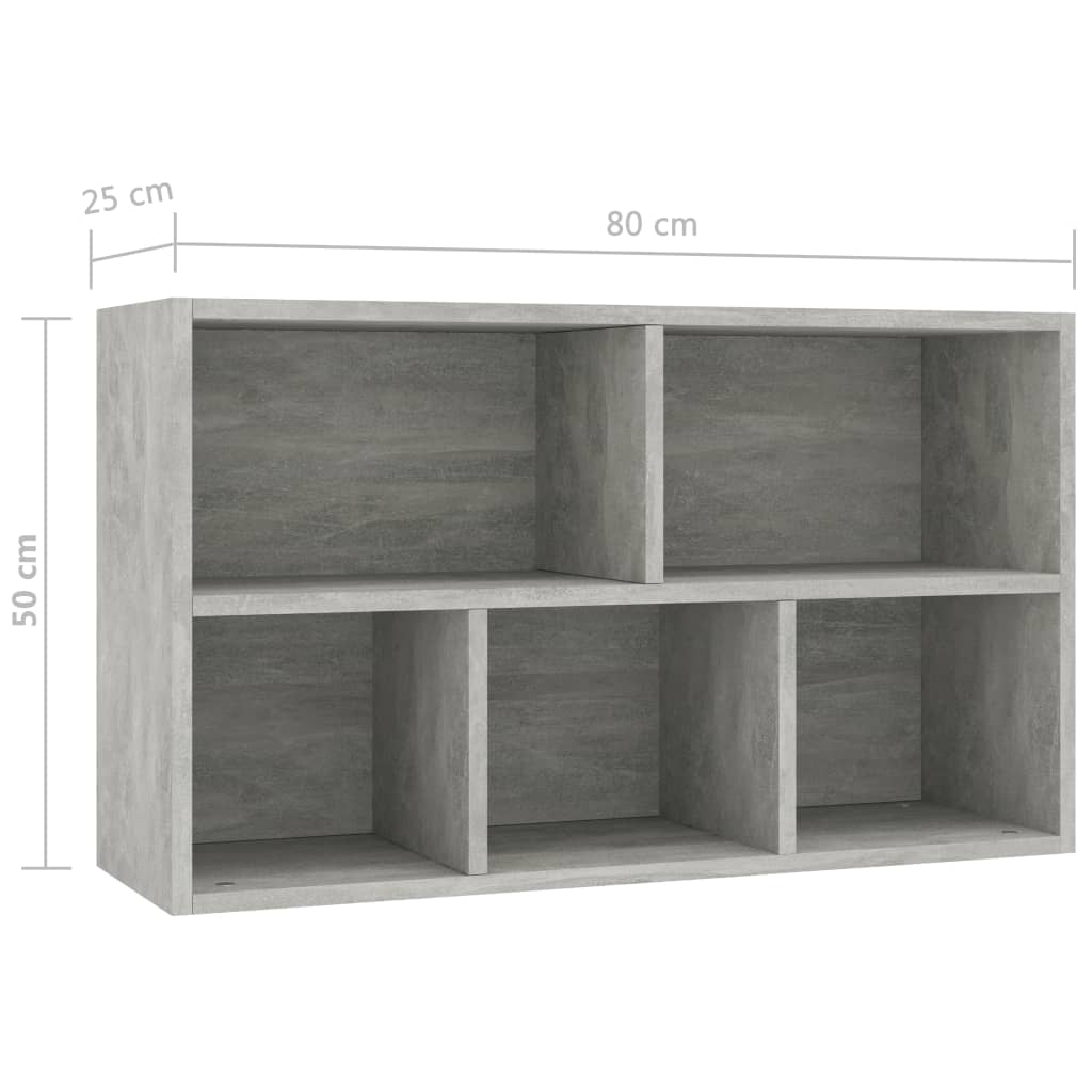 vidaXL Knižnica/komoda, betónovo sivá 50x25x80 cm, kompozitné drevo