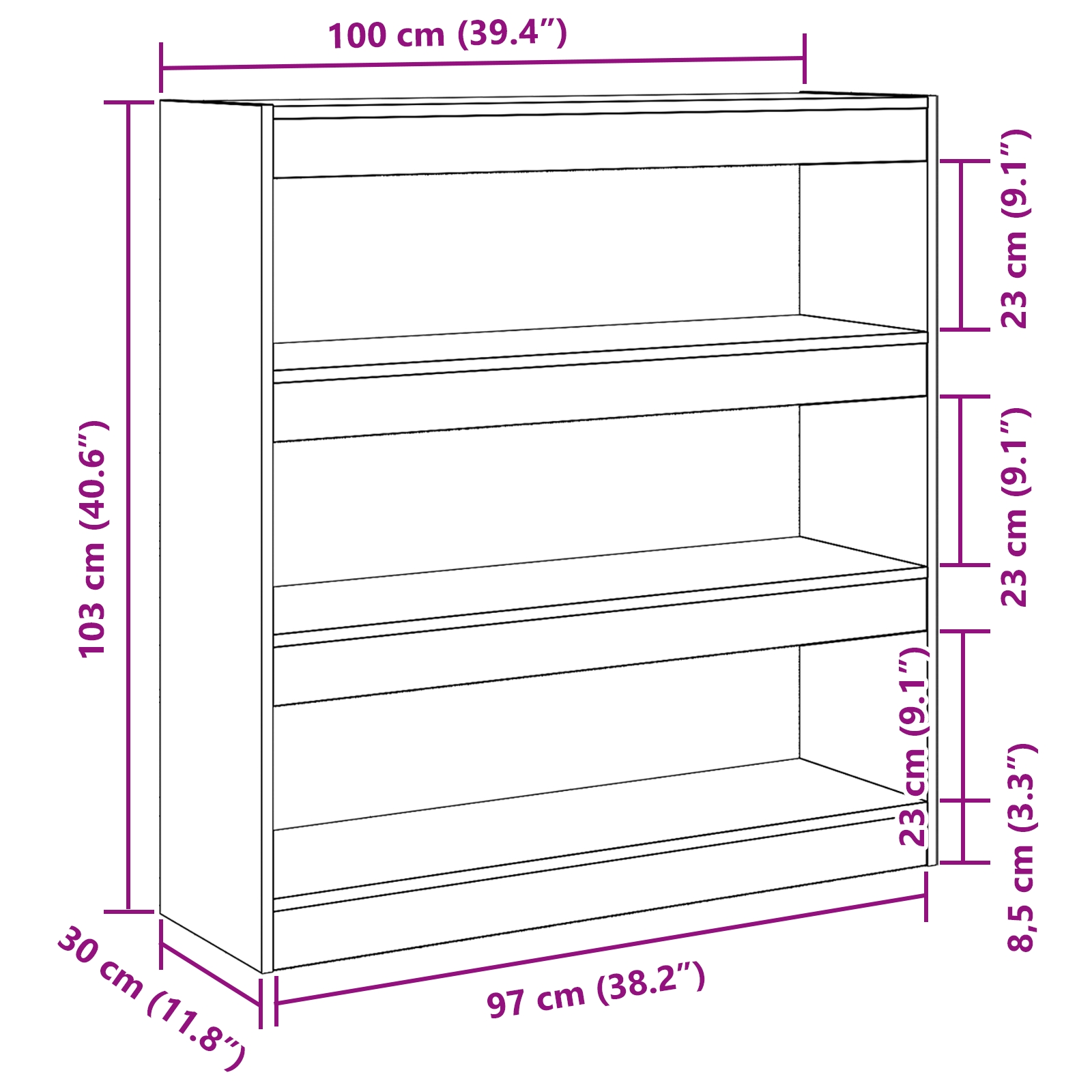 vidaXL Knižnica/Rozdeľovač Čierny dub 100x30x103cm Inžinierske drevo