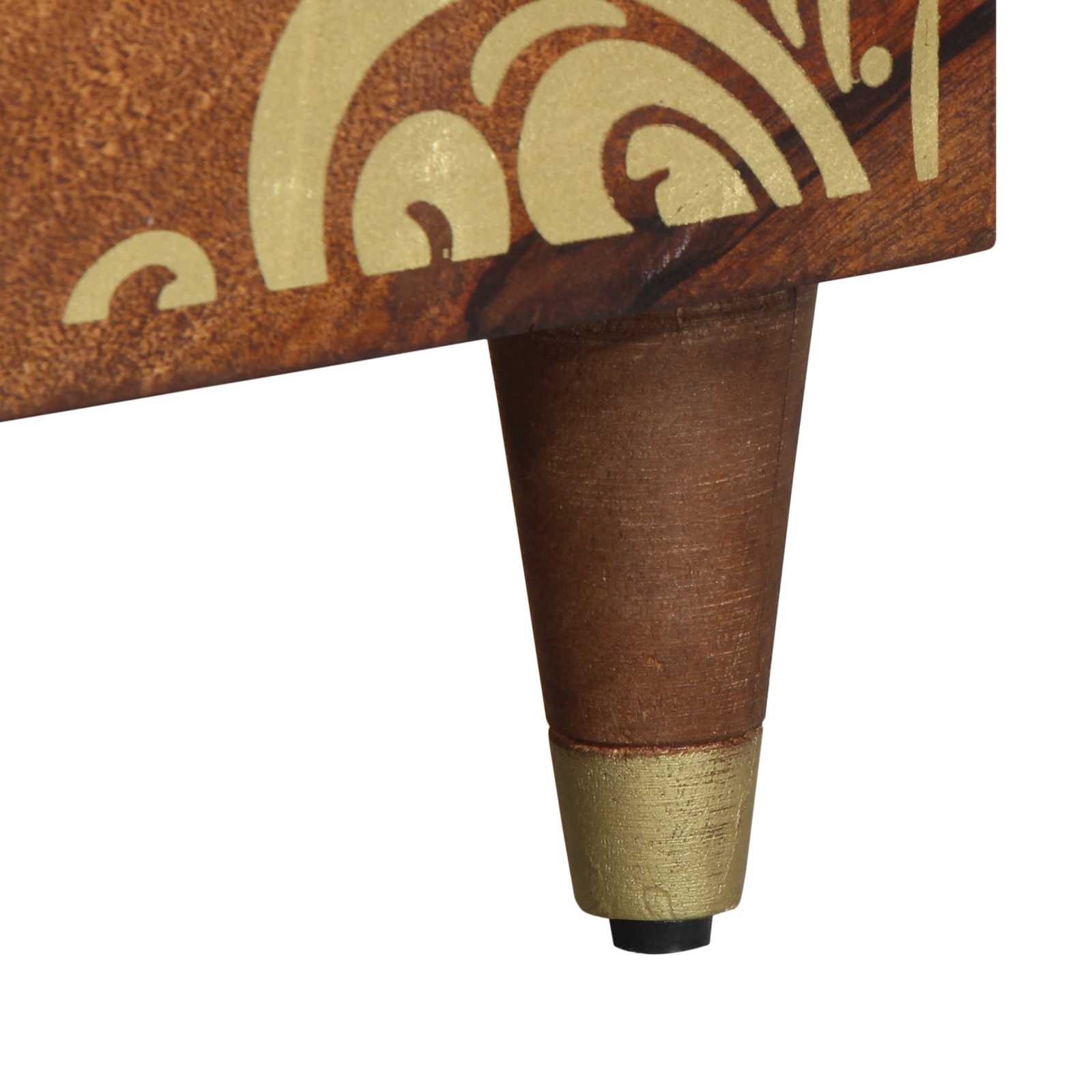 Táto hnedá drevená úložná skriňa je skvelá kombinácia štýlu a užitočnosti, navrhnutá tak, aby pekne zapadla do tvojich priestorov. Má bohatú hnedú farbu a zasnené kvetinové vzory, takže je skvelý stredobod pozornosti, či už je to v obývačke alebo elegantnej kancelárií.