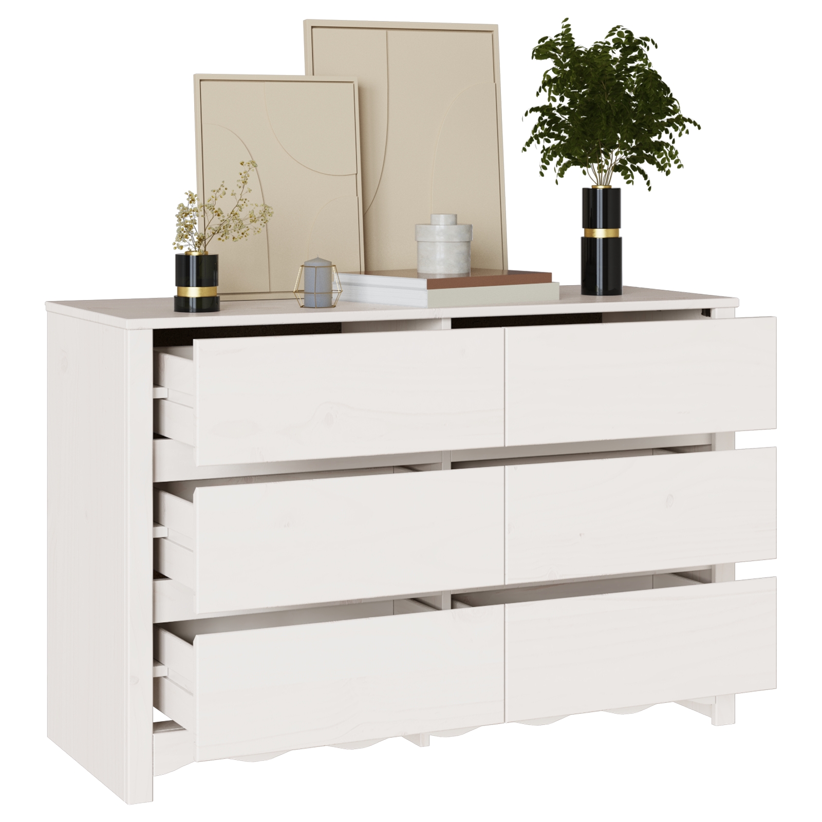 • Dôkladné úložisko: So šiestimi priestrannými zásuvkami ti táto komoda pomáha udržať veci organizované a maximalizovať priestor v izbe. Perfektná na oblečenie, prádlo alebo drobnosti, táto elegantná konštrukcia uľahčuje zvládať úložné potreby.