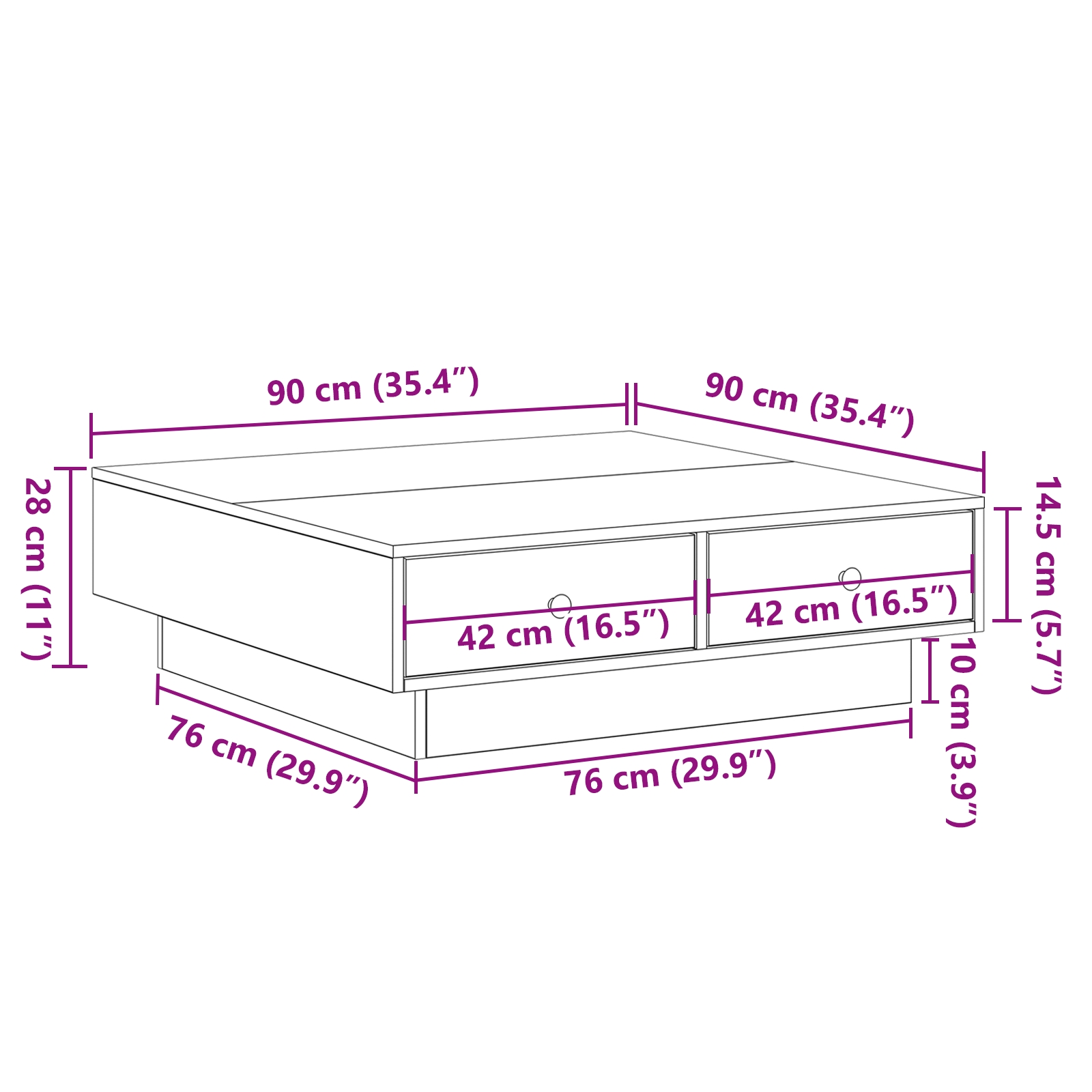 • Priestranný povrch: Stolová doska 90 x 90 cm je ideálna na tvoje nápoje, knihy alebo veci, takže máš obývačku stále upratanú.