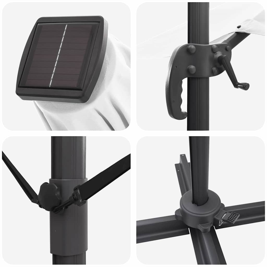 Tento veľký konzolový slnečník od vidaXL je štýlovým riešením na vonkajšie tienenie, ideálnym pre balkóny, terasy alebo záhrady. Má elegantný moderný dizajn, ktorý ťa udrží v tieni pred slnkom.