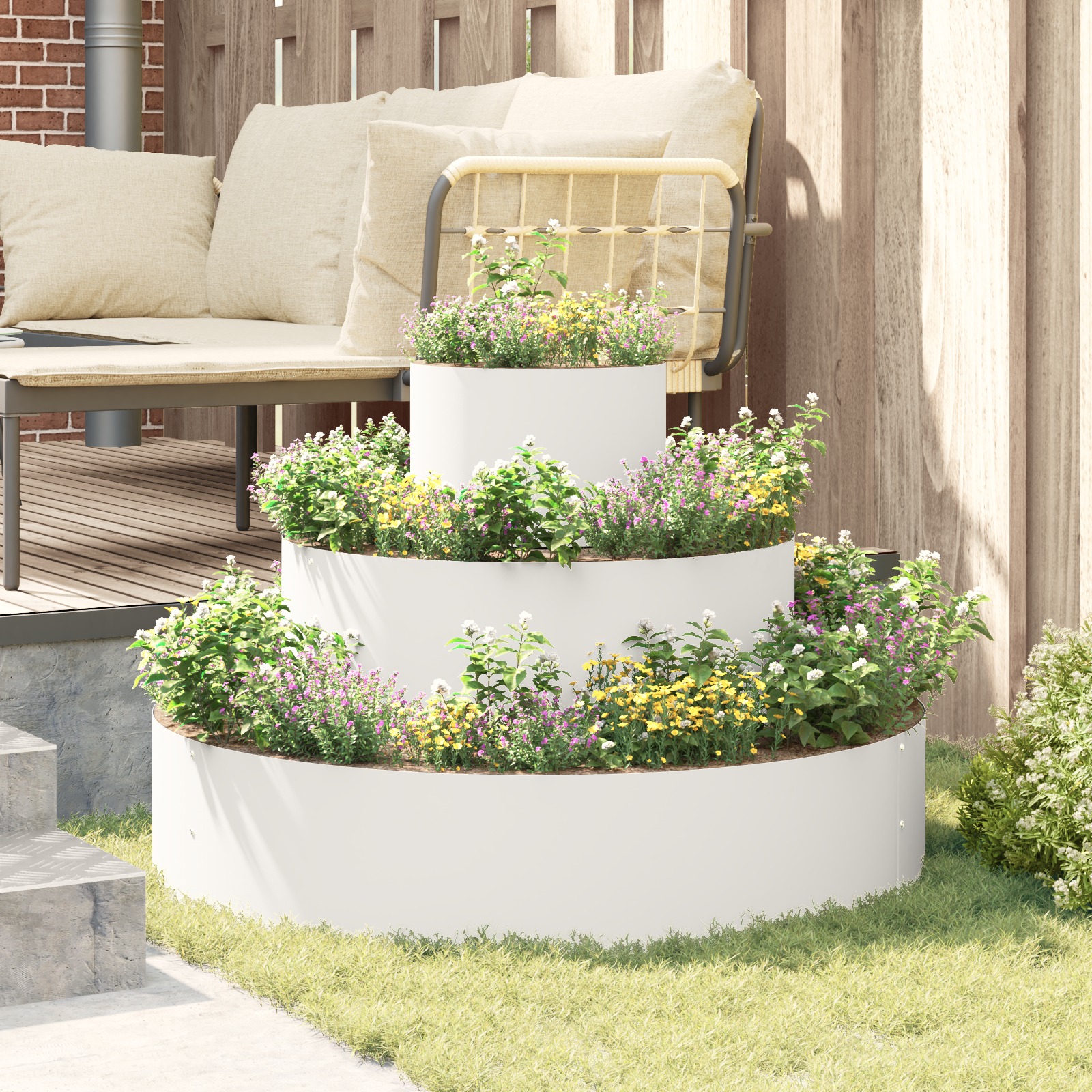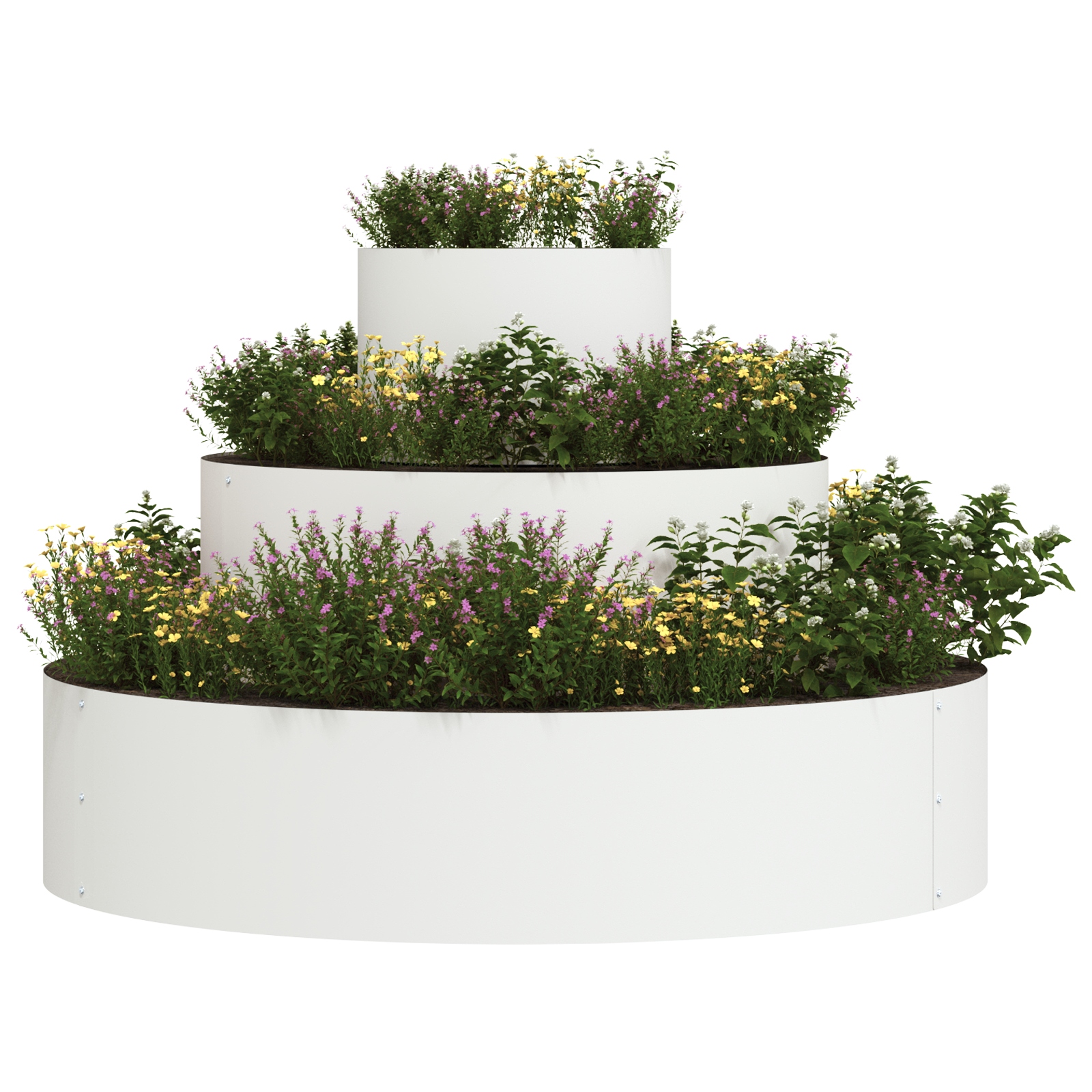 vidaXL Kovový kvetináč Oceľ/biela Práškovaná oceľ Veľký Kvetináče