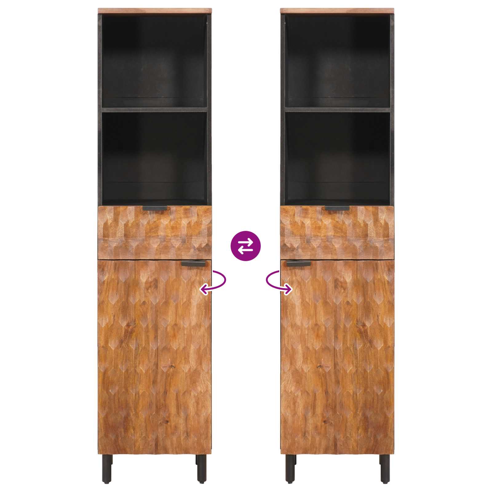 • Materiály: Tento kabinet je vyrobený z kvalitného dreva, ktoré zaručuje pevnú a trvácnu štruktúru. Natieraný povrch zvyšuje jeho odolnosť voči vlhkosti, takže zostáva kľúčovým prvkom vo vašej kúpeľni na dlhé roky.