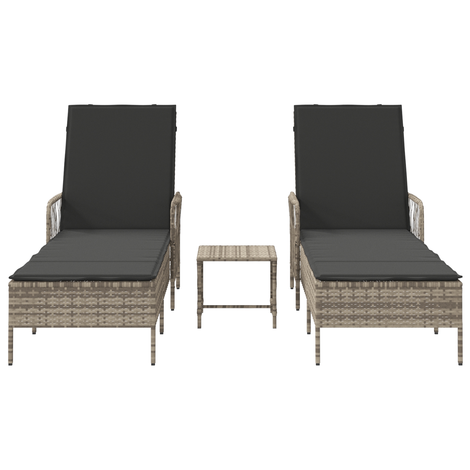 vidaXL Lehátko na slnko Sada 3 Svetlosivé a tmavosivé PE ratan, kov