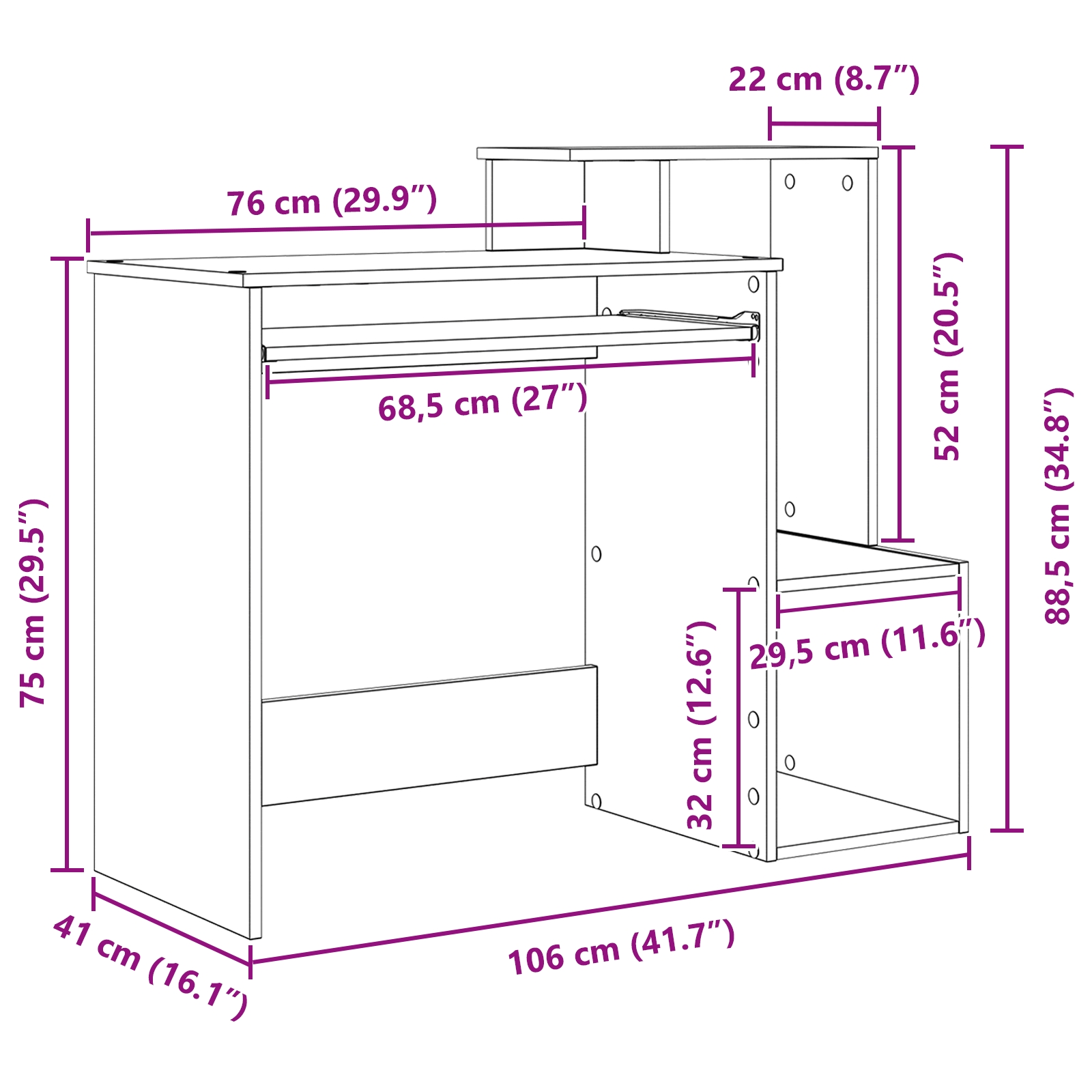 Tento počítačový stôl pridáva štýlový a praktický nádych do tvojej pracovnej plochy. Ponúka množstvo priestoru a zároveň zostáva minimalistický. Jeho moderný dizajn je skvelý do domácnosti či študovne a pokrýva všetky tvoje potreby.