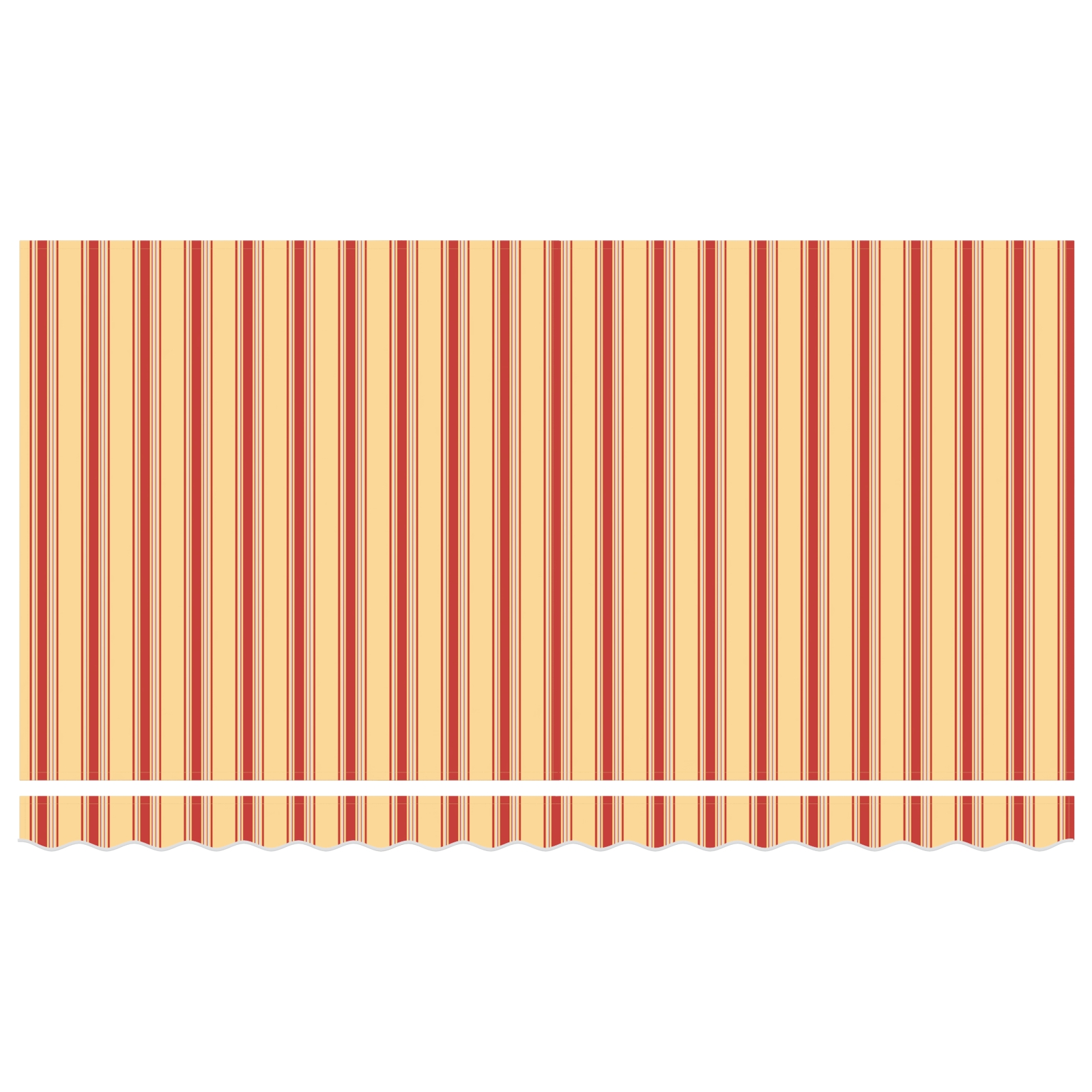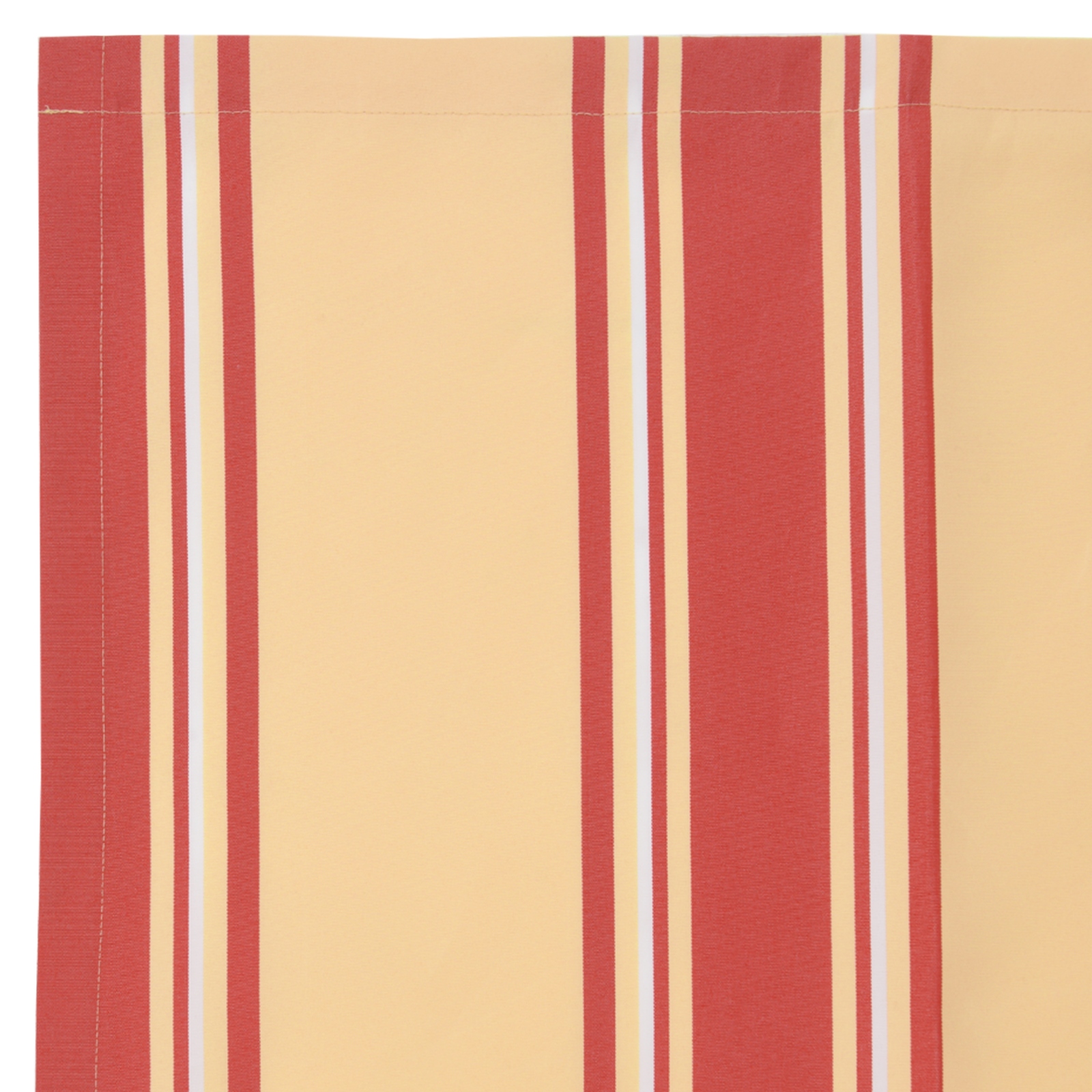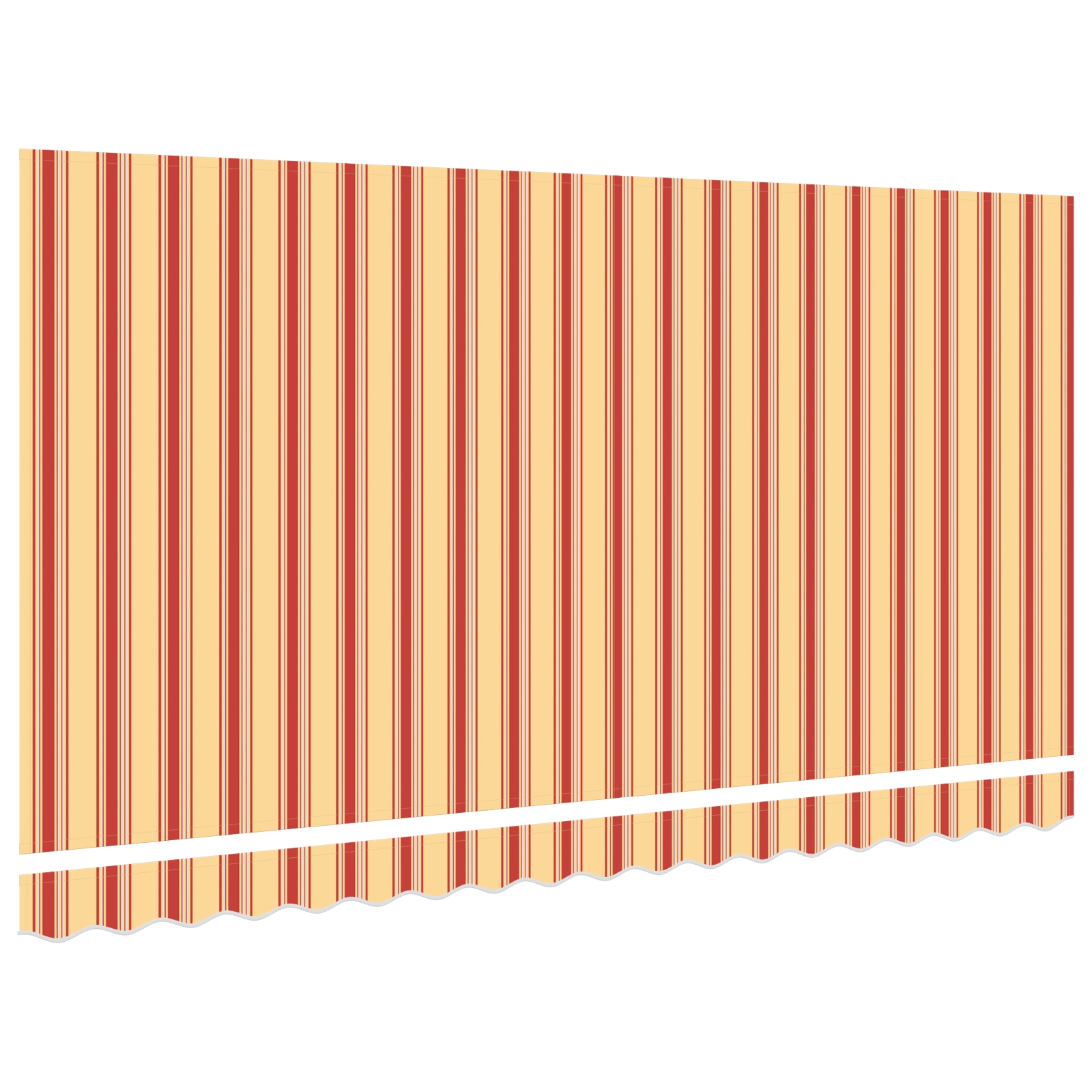 Látka na markízu má rozmery 400 x 200 cm a jasný pruhovaný dizajn v žltej, oranžovej a bielej. Ľahko ju prispôsobíš podľa potreby, takže je ideálna na sezónne používanie v lete.