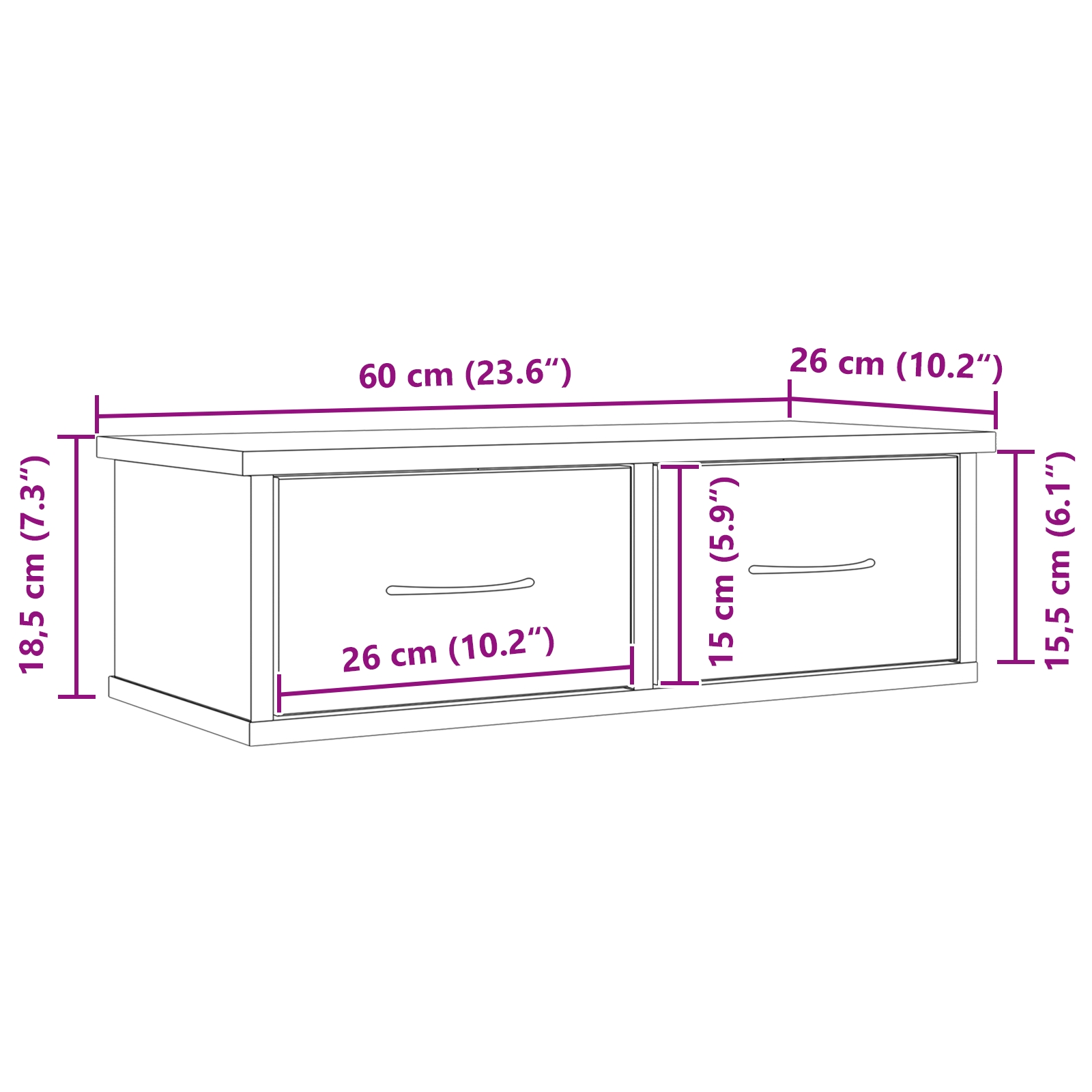 vidaXL Nástenná polica so zásuvkou čierny dub 60x26x18,5 cm kompozitné drevo