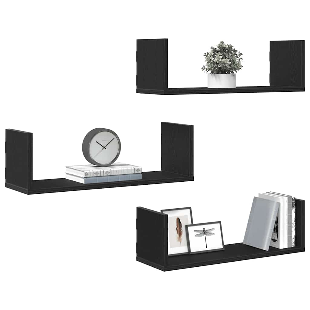 vidaXL Nástenné police 3 ks, čierne dub 58x18x18 cm, kompozitné drevo