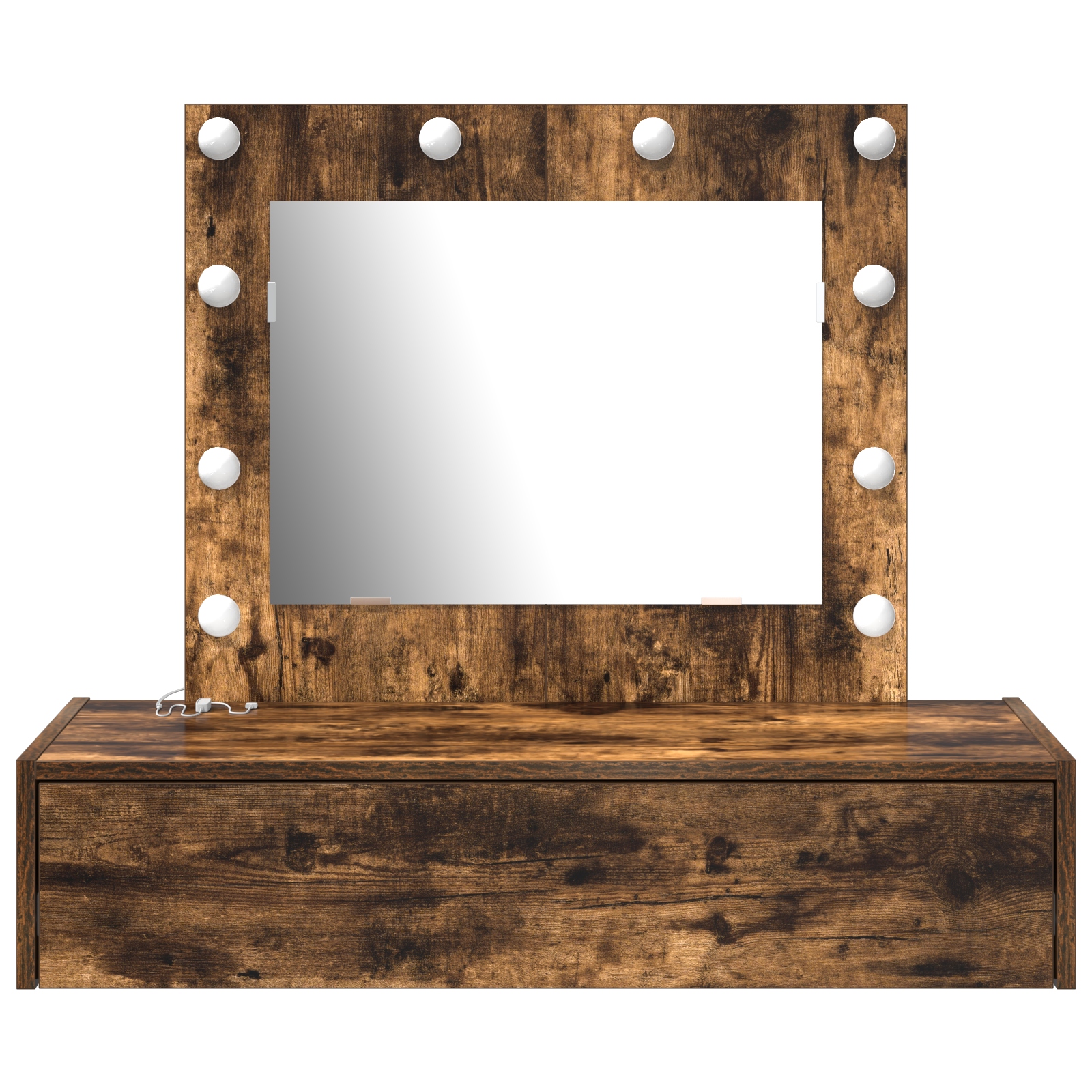 vidaXL Nástenný toaletný stolík so LED svetlami z dymového dubu