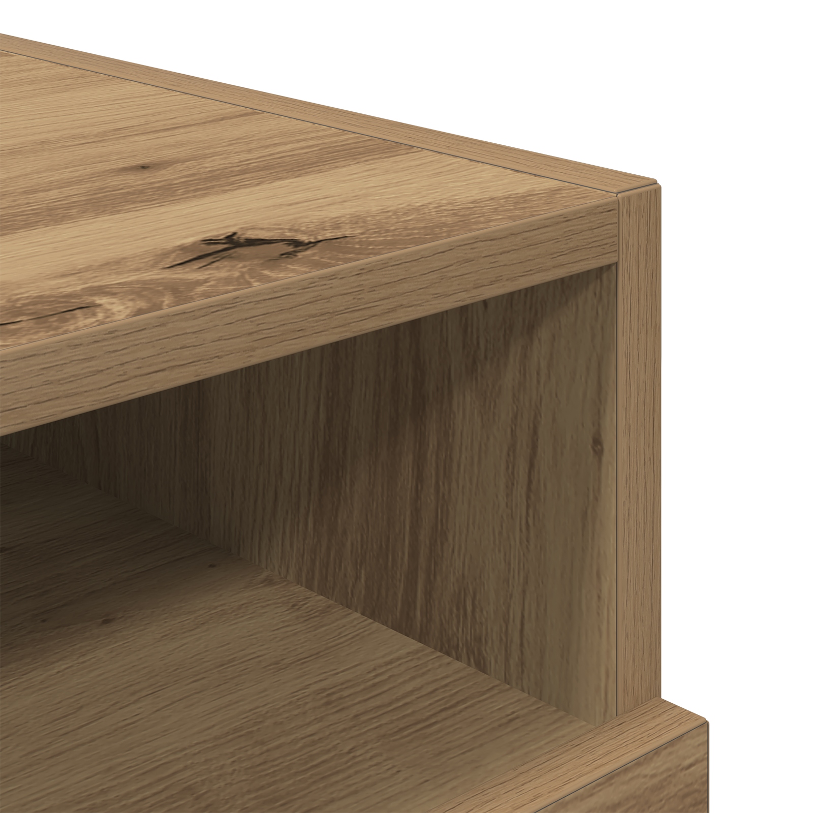 Tento moderný nočný stolík perfektne kombinuje funkčnosť so štýlom. Je ideálny do spálne, s krásnym remeselným dubovým povrchom a pridáva sofistikovaný pocit. Má dosť úložného priestoru pre lampy, budíky alebo osobné drobnosti, takže budeš mať všetko prehľadne po ruke.
