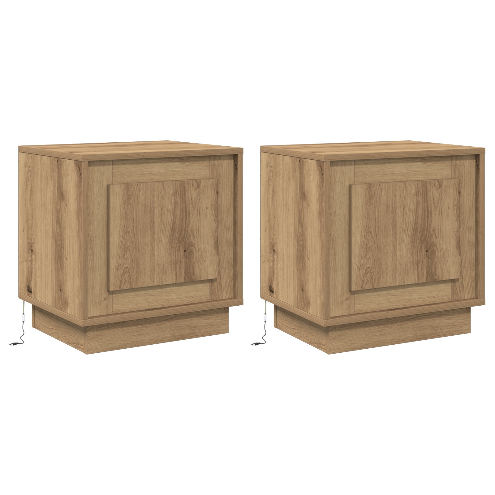 vidaXL Nočné Stolíky s LED Svetlami 2 ks Artisan Dub 44x34,5x45 cm