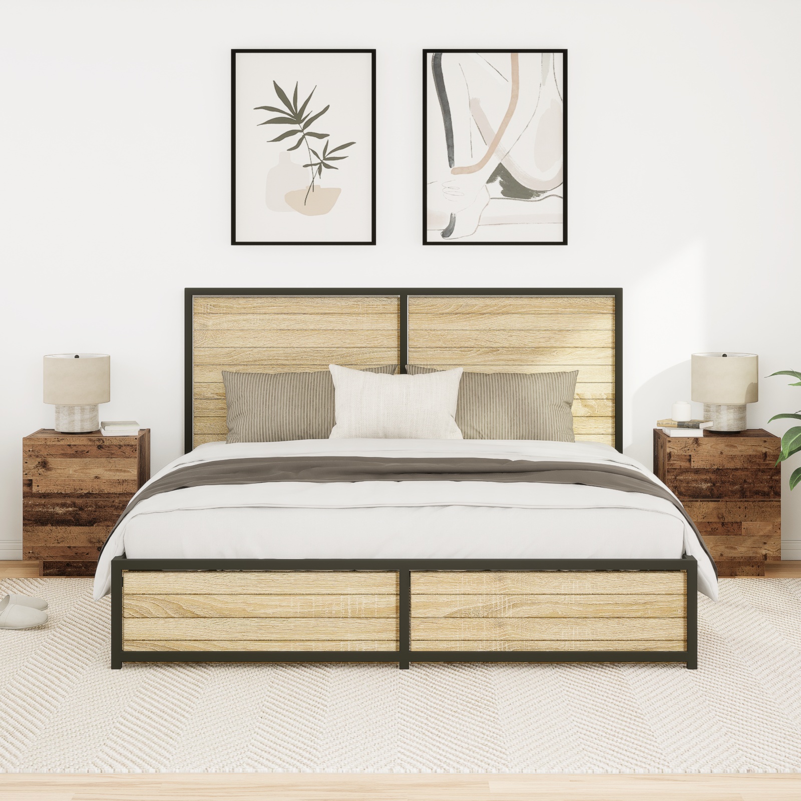 vidaXL Nočné stolíky s LED svetlami 2 ks Staré drevo 45x40x55 cm