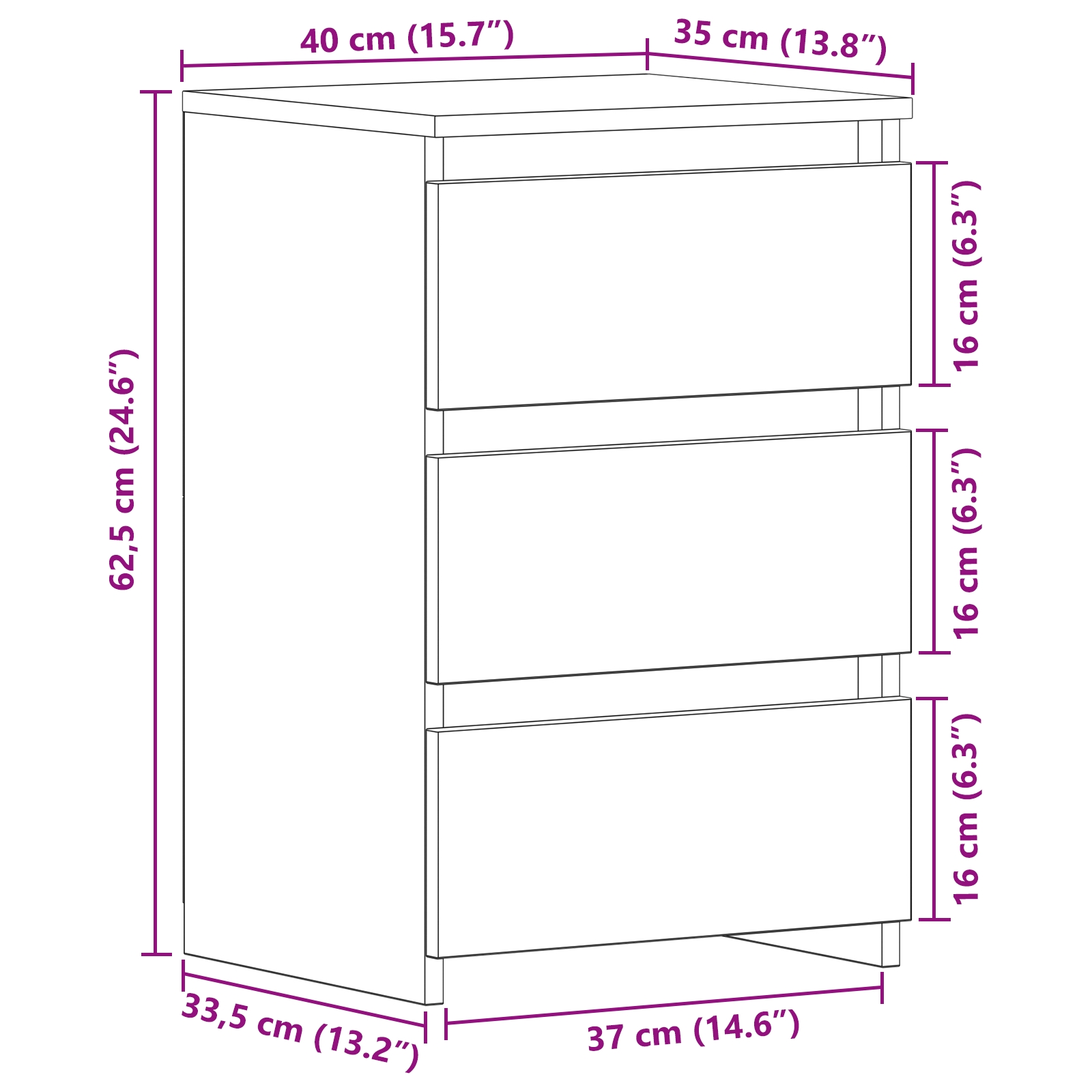 • Dimensions: 40 x 35 x 62.5 cm (W x D x H)