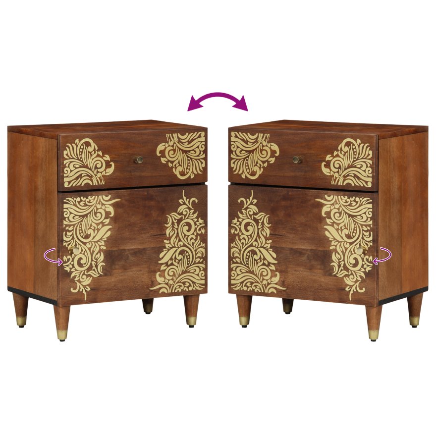 Tento nočný stolík skvele spája funkcie s krásou, vyrobený z solidného akáciového dreva známeho svojou pevnosťou a vzhľadom. Pôvabný kvetinový dizajn ozvláštni dekoráciu tvojej spálne, ideálny pre tých, ktorí si cenia kombináciu užitočnosti a elegancie.