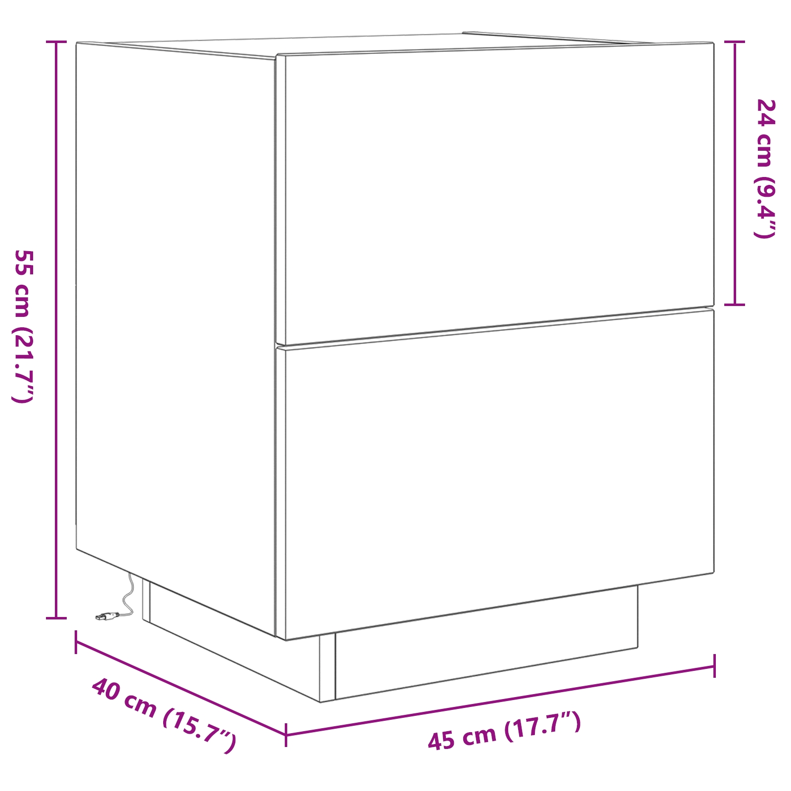 vidaXL Nočný stolík s LED svetlami, Artisan Dub, 45x40x55 cm