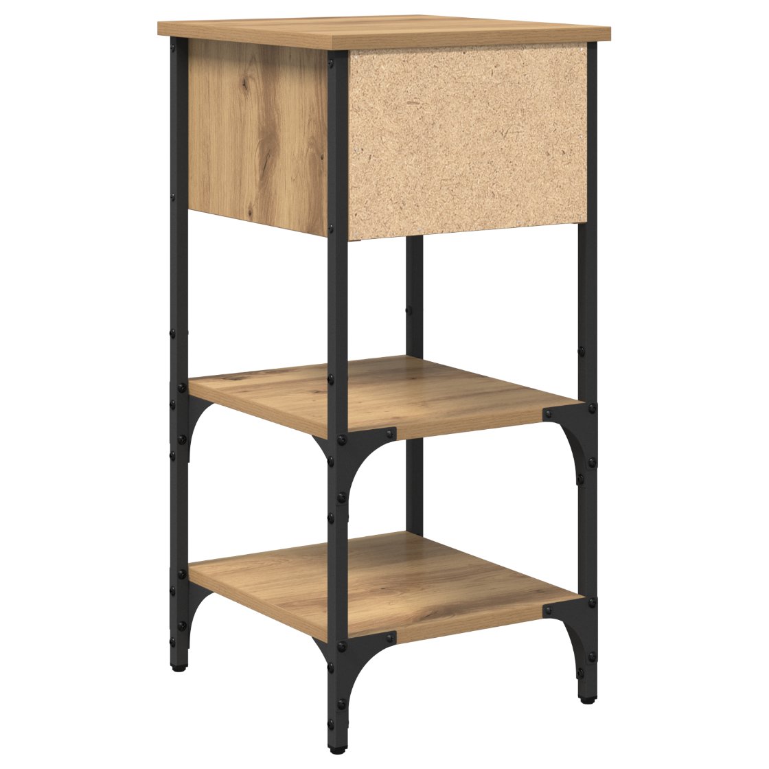 Tento nočný stolík má hladký povrch umelej dyhy a pevný čierny kovový rám. Priestranná zásuvka a dve police sú ideálne na udržiavanie poriadku.