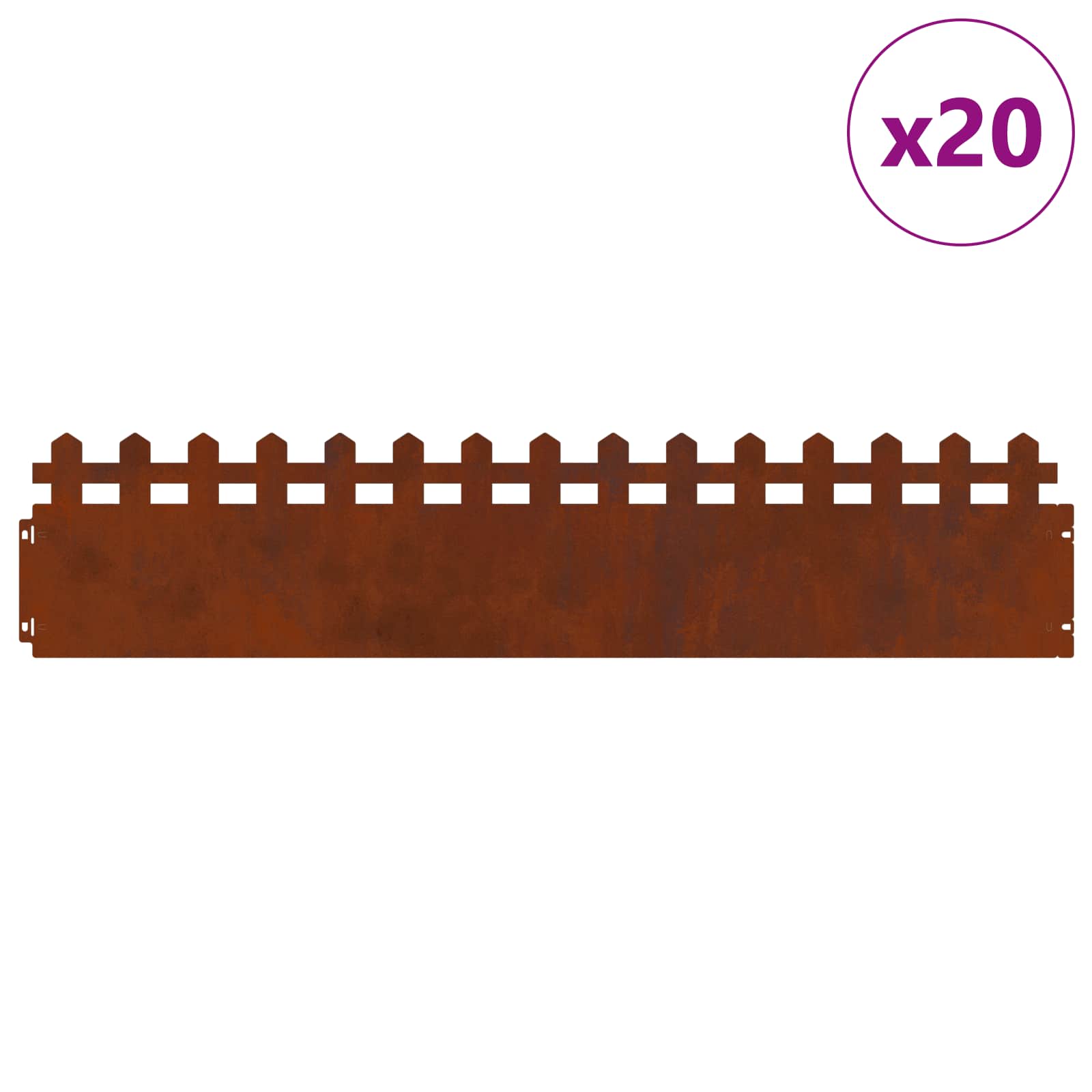 vidaXL Obrubníky trávnika 20 pcs Hrdzavý 103 x 0,05 x 22 cm vidaXL Obrubníky trávnika 20 pcs Hrdzavý 103 x 0,05 x 22 cm