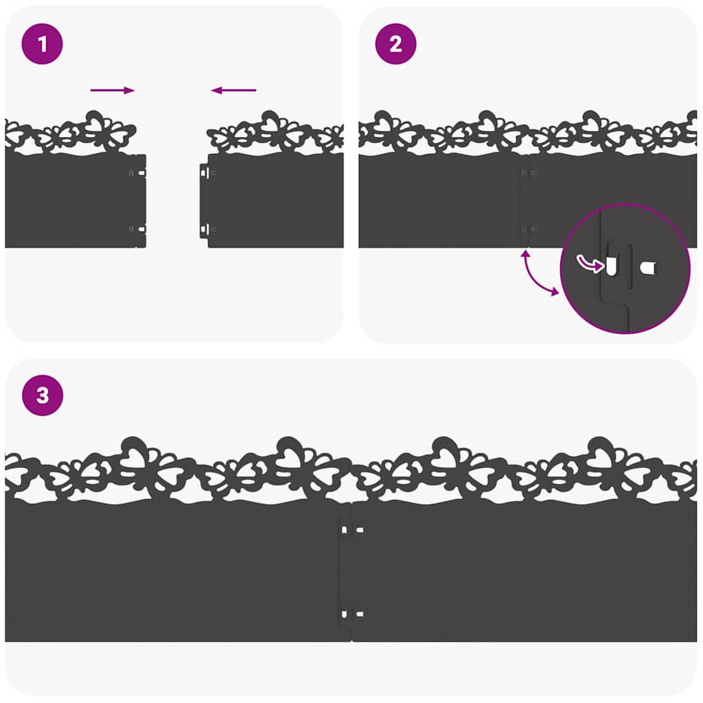 vidaXL Obrubníky trávnika 30 pcs Čierna 103 x 0,05 x 22 cm Oceľ