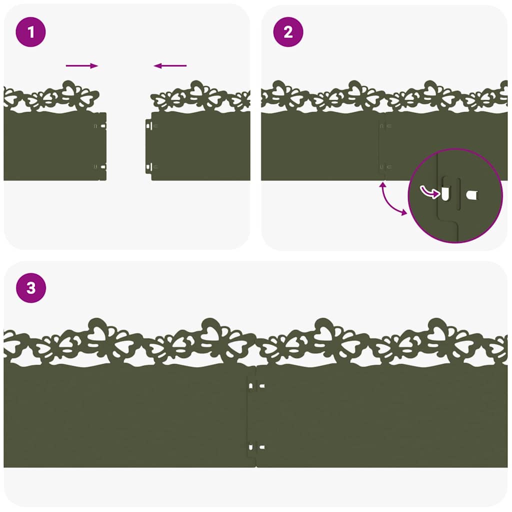 vidaXL Obrubníky trávnika 30 pcs Olivová zelená 103 x 0,05 x 22 cm vidaXL Obrubníky trávnika 30 pcs Olivová zelená 103 x 0,05 x 22 cm