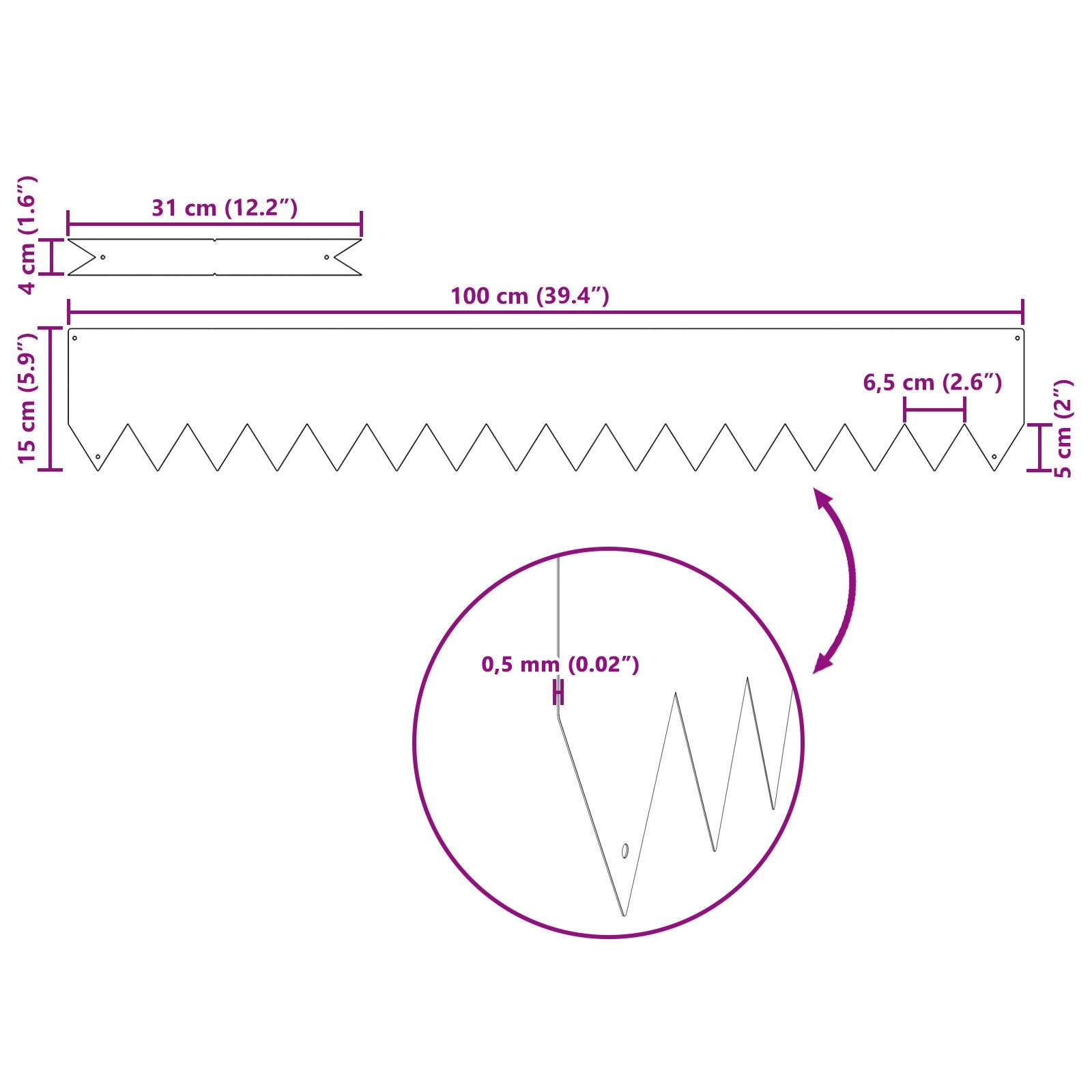 • Trvácnosť: Vyrobený z tvrdej pozinkovanej ocele, tento obrubník je postavený na dlhú životnosť a pritom si zachováva svoj hladký povrch, jednoducho zvláda opotrebenie.