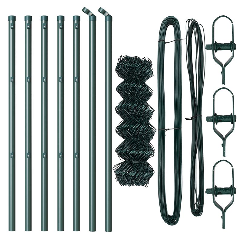 Táto sada stĺpikov z reťazového pletiva je výborná voľba na ochranu vonkajších priestorov. Vyrobené z odolnej ocele s práškovou úpravou, majú krásnu zelenú farbu, ktorá sa hodí do záhrady a poskytuje stabilnú oporu.