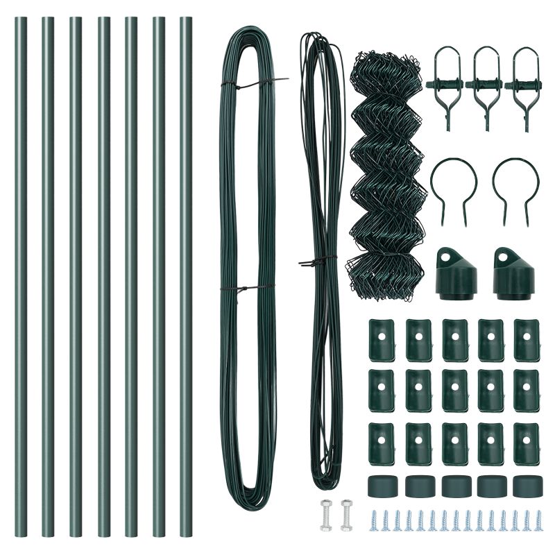 vidaXL Oplotenie z reťazového pletiva s 7 stĺpikmi 0.4×10 m Galvanizovaná oceľ Zelená