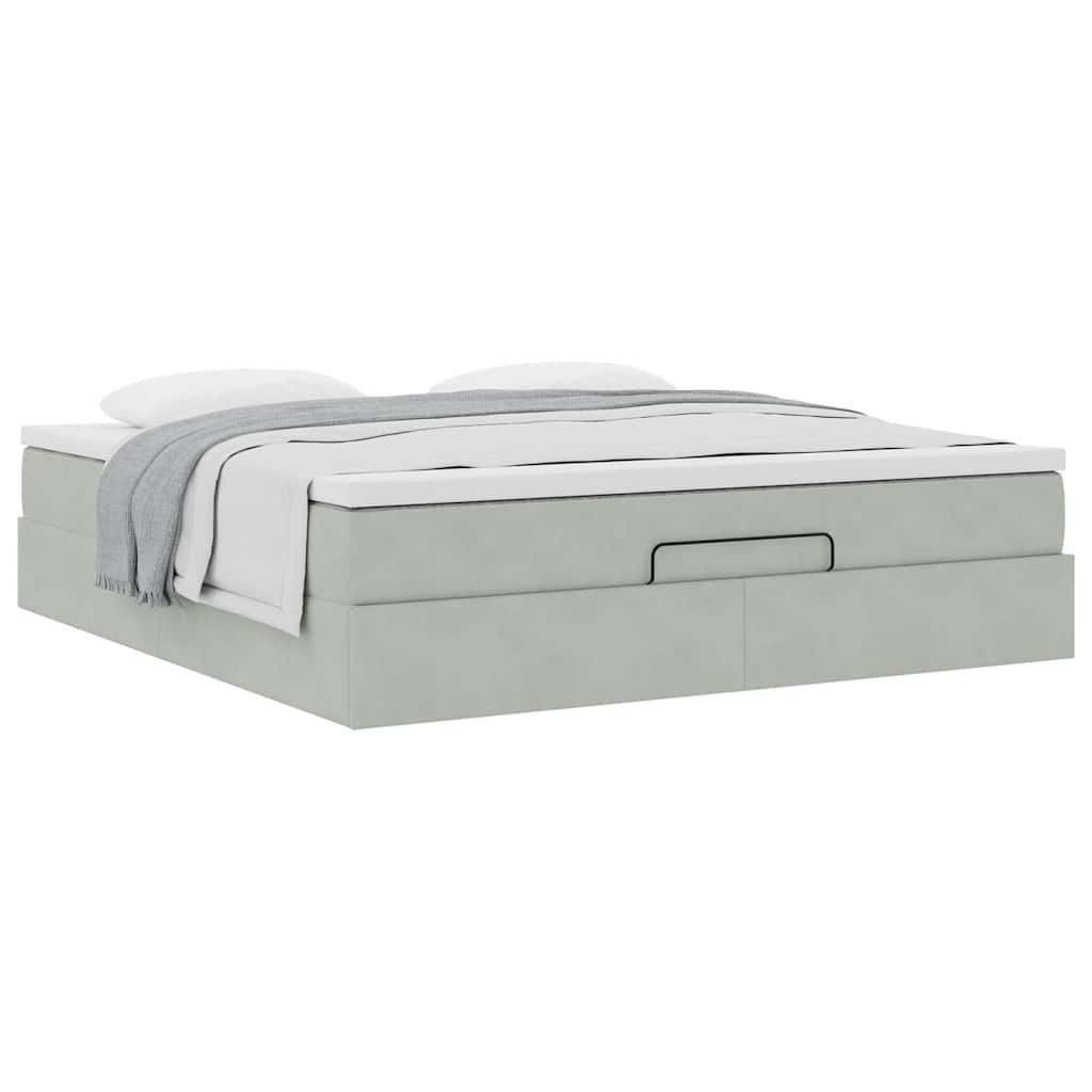 vidaXL Osmanská posteľ s matracom Svetlosivá 160x200cm Zamat