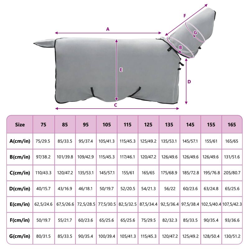- Materiál: Deka je z polyesteru, takže je odolná voči zlým vonkajším podmienkam. Sametová textúra dodáva pohodlie a zabezpečí, že váš kôň bude v teple a bez podráždenia.