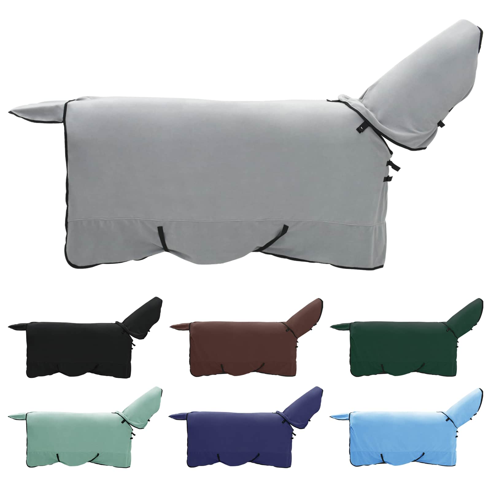 • Materiál: Deka je z polyesteru, takže je odolná voči zlým vonkajším podmienkam. Sametová textúra dodáva pohodlie a zabezpečí, že váš kôň bude v teple a bez podráždenia.