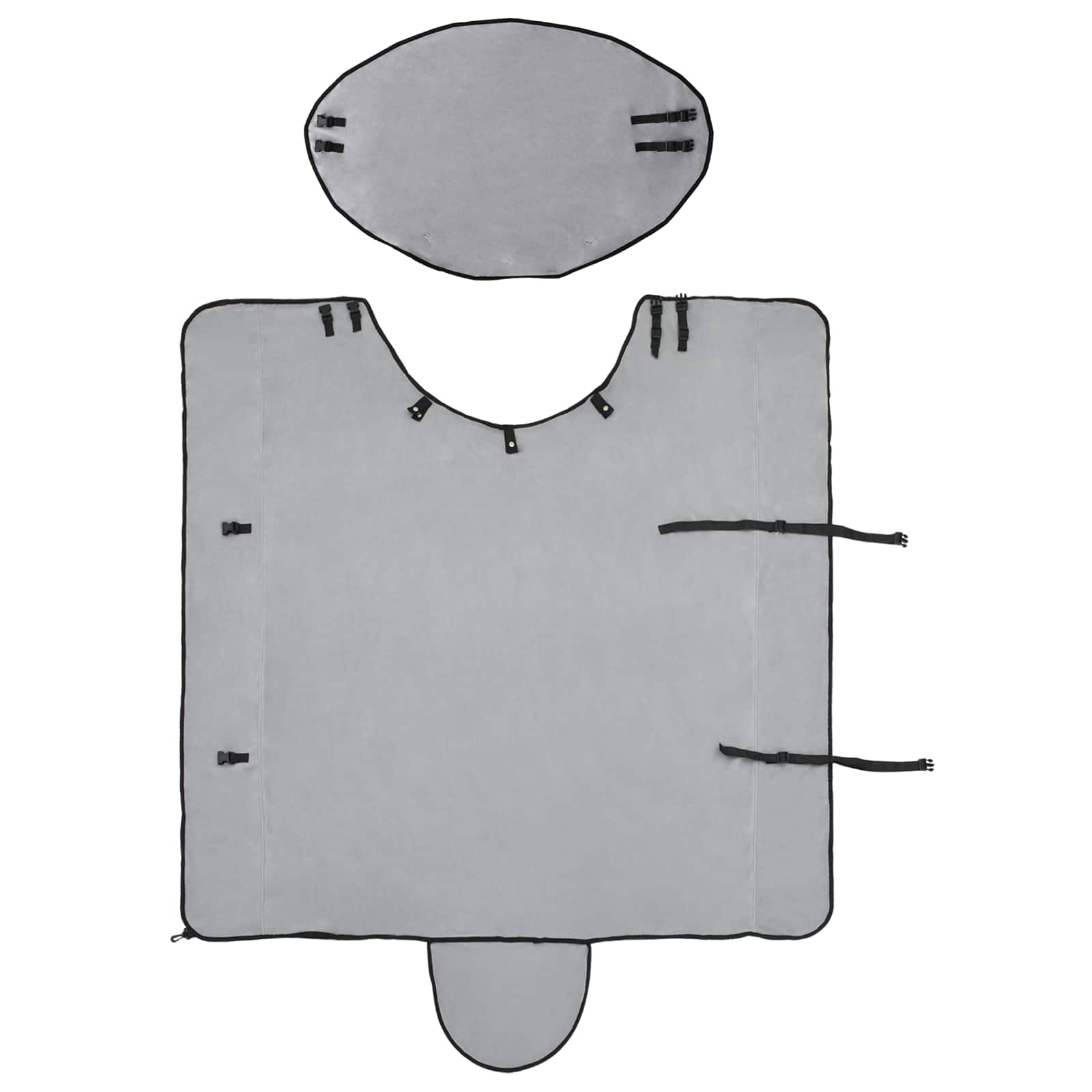 • Prispôsobitelné prvky: Deka má odnímateľné časti, čo znamená, že ju môžete prispôsobiť podľa veľkosti a potrieb koní. Takto sadne presne a udrží chlad vonku.