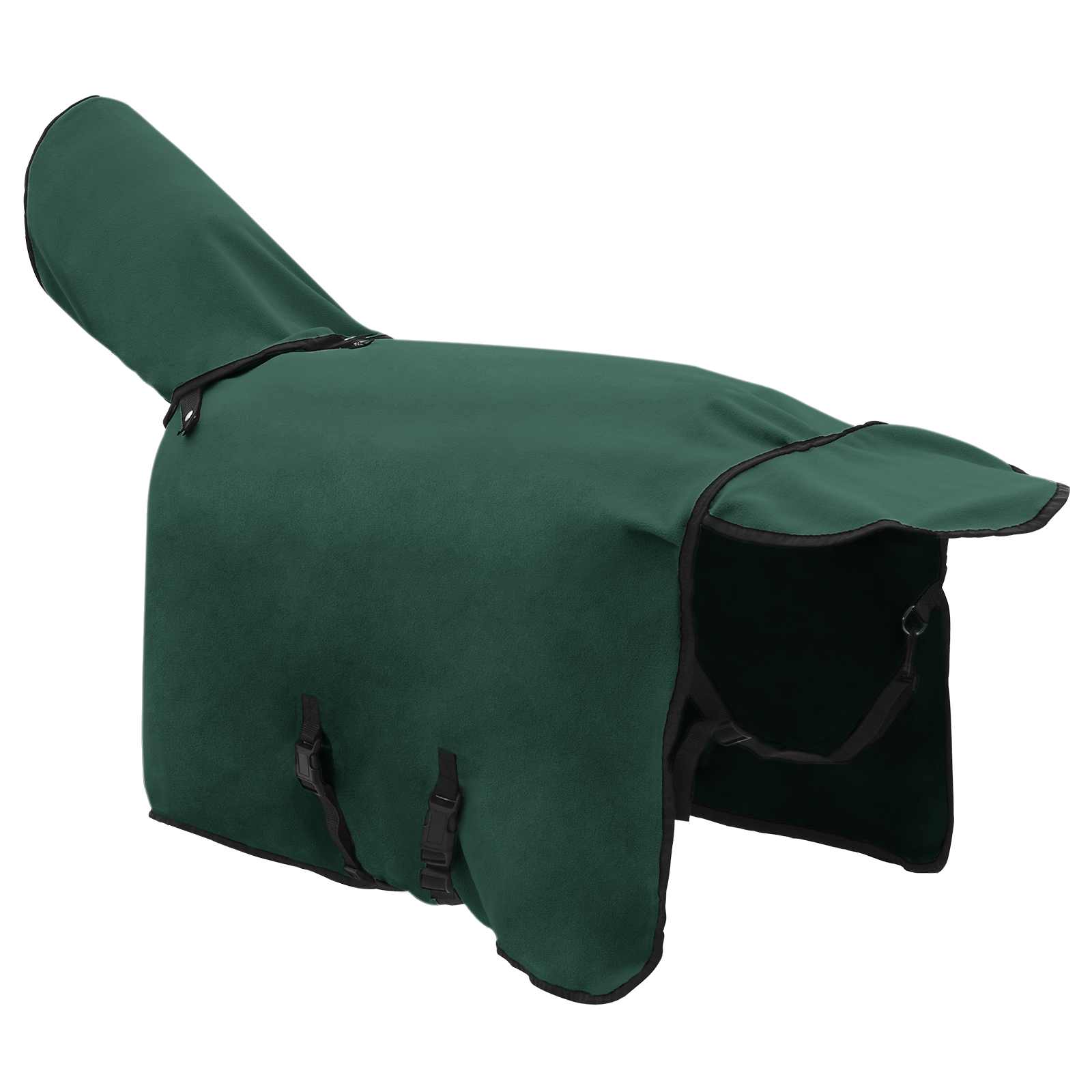 • Prispôsobitelné prvky: Deka má odnímateľné časti, čo znamená, že ju môžete prispôsobiť podľa veľkosti a potrieb koní. Takto sadne presne a udrží chlad vonku.