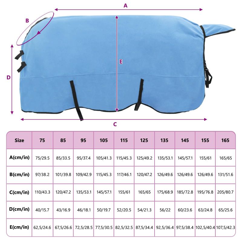 • Materiál: Deka je z polyesteru, takže je odolná voči zlým vonkajším podmienkam. Sametová textúra dodáva pohodlie a zabezpečí, že váš kôň bude v teple a bez podráždenia.