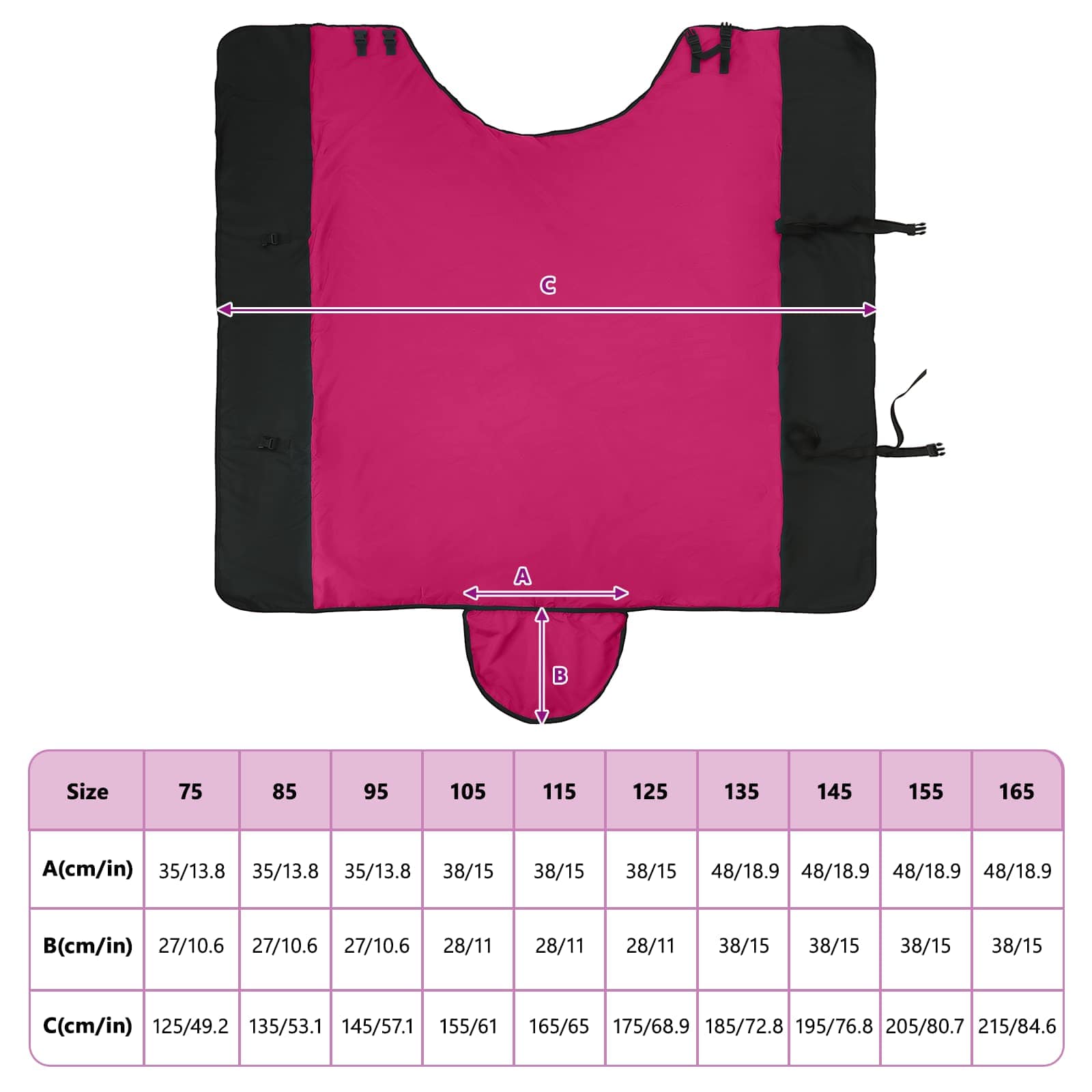 • Praktické dizajnové prvky: V obleku sú nastaviteľné pracky a suchý zips, takže bude na vašom koni perfektne sedieť. Skvele to uľahčuje nasadzovanie a sťahovanie obleku, čo je super, ak sa počasie rýchlo mení alebo ak má kôň rôznu aktivitu.