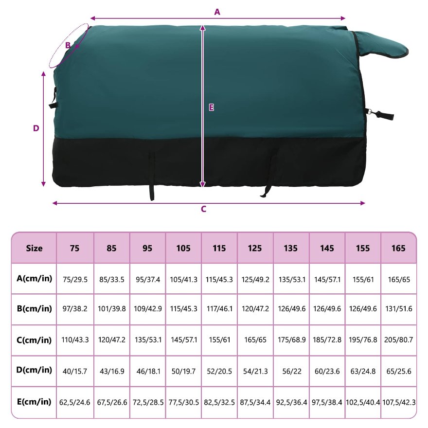 • Vysokokvalitný polyester: Oblek je z vodotesného polyesteru, ktorý účinne ochráni pred dažďom aj snehom. Je to trvanlivý materiál, ktorý udrží kone v teple aj v nepriaznivom počasí, zatiaľ čo vy sa nemusíte báť o ich pohodu. ľahké čistenie v práčke zabezpečuje dlhú životnosť a stále skvelý vzhľad.