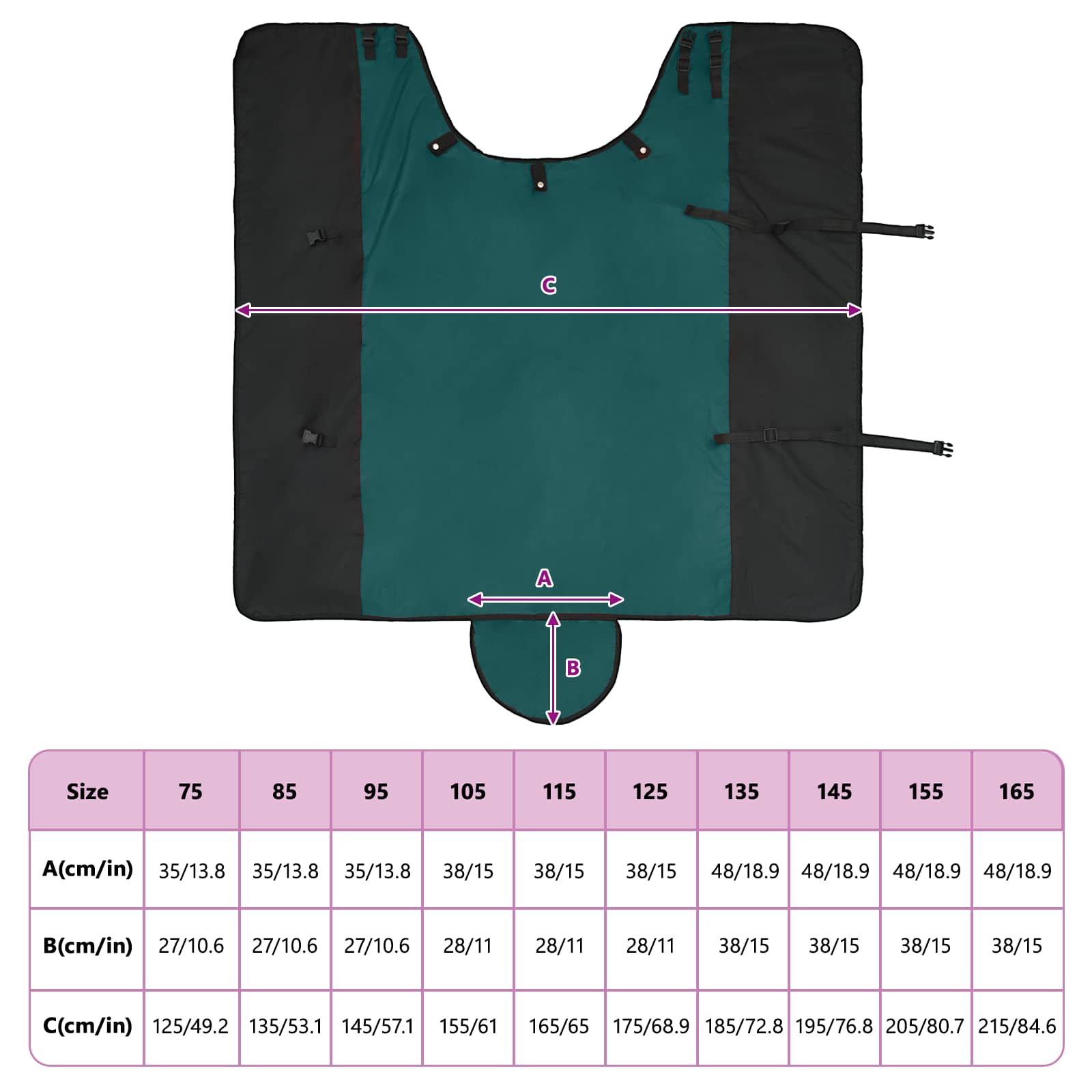 • Vysokokvalitný polyester: Oblek je z vodotesného polyesteru, ktorý účinne ochráni pred dažďom aj snehom. Je to trvanlivý materiál, ktorý udrží kone v teple aj v nepriaznivom počasí, zatiaľ čo vy sa nemusíte báť o ich pohodu. ľahké čistenie v práčke zabezpečuje dlhú životnosť a stále skvelý vzhľad.