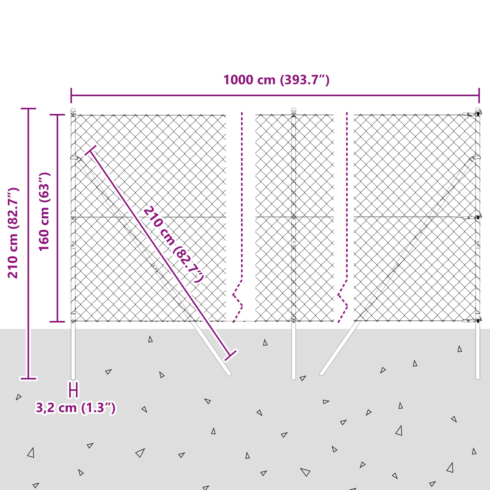 vidaXL Plot z reťazovej siete s 7 stĺpmi 1.6×10 m Železný Zelený