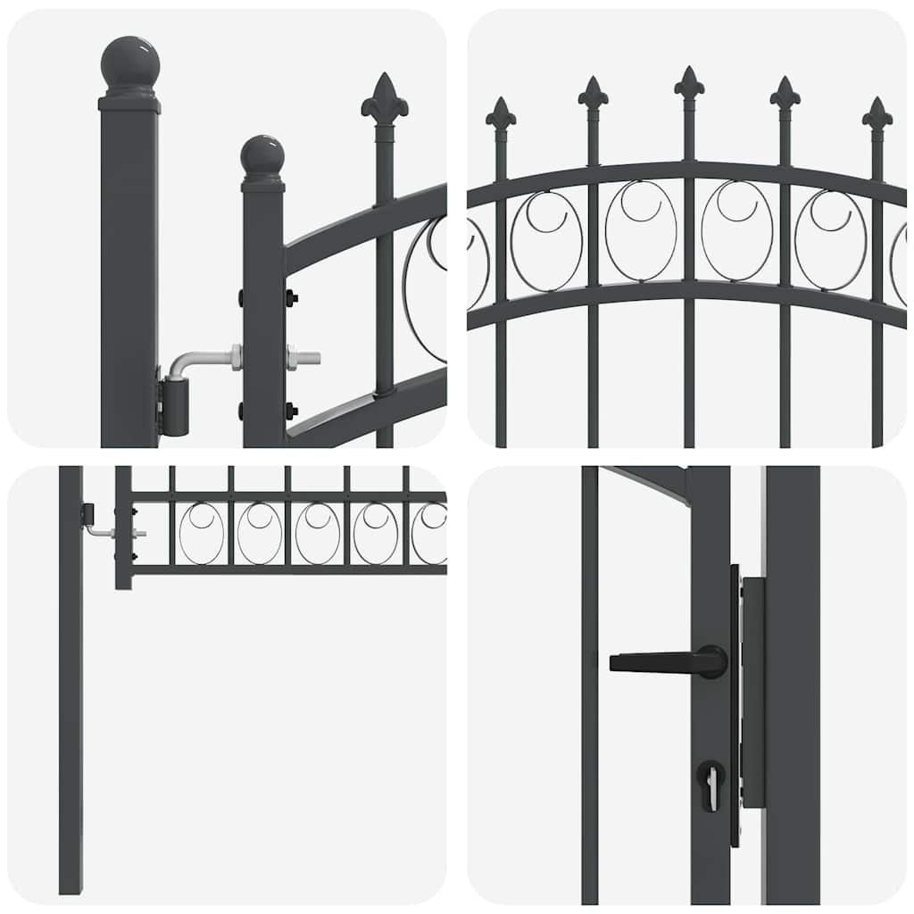 Táto elegantná brána prináša funkčnosť a moderný vzhľad do každého vonkajšieho priestoru. Navrhnutá špeciálne pre záhrady a terasy, spája nadčasový dizajn s bezpečnosťou. Vyrobená z odolnej ocele s práškovou povrchovou úpravou, táto brána nie je len silná a odolná voči poveternostným podmienkam, ale tiež vizuálne príťažlivá, čo zlepšuje celkový pocit vo vašich priestoroch. Zakrivený vrch a elegantné hroty zabezpečujú štýlový a bezpečný prístup vo vašej záhrade.
