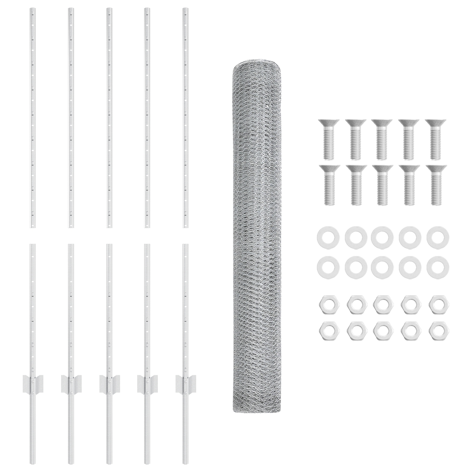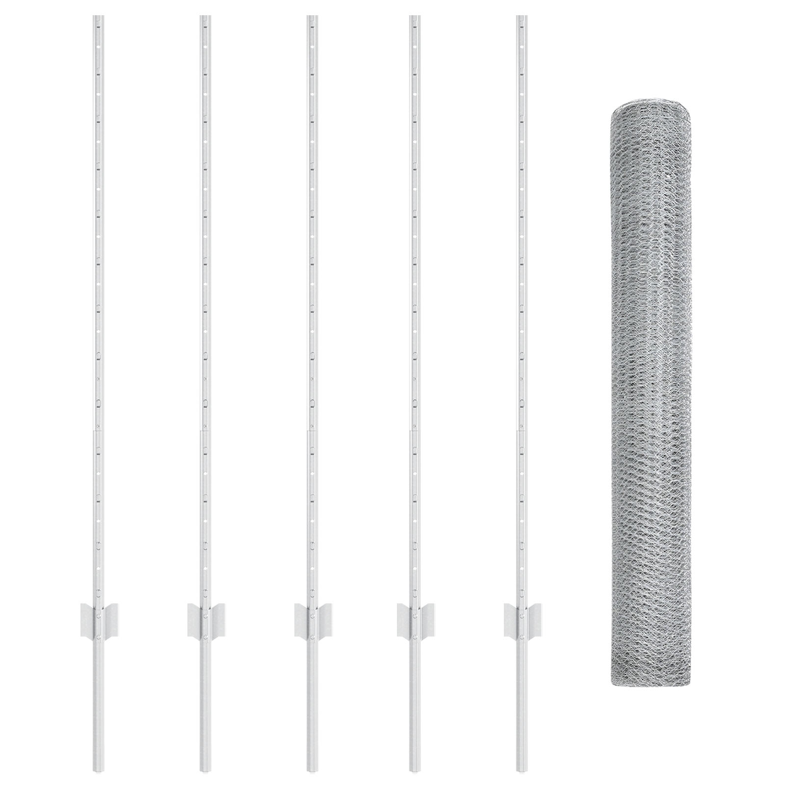 • Kompletná súprava: Obsahuje rolku šedého plotu a päť pevných stĺpov pre dôkladné riešenie oplotenia väčších oblastí.