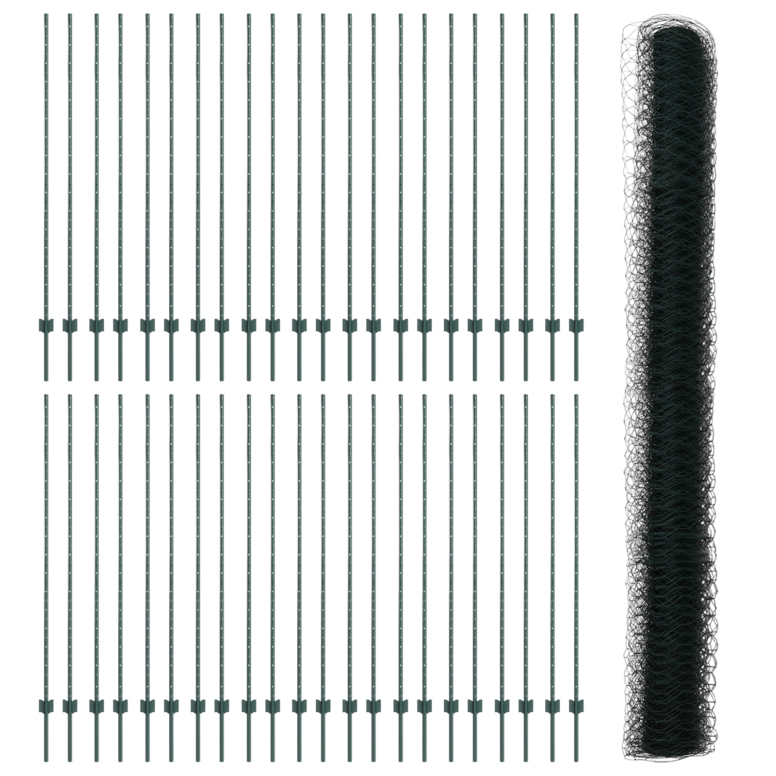 vidaXL Plotové stĺpy 11 ks U-Channel Zelené 150 cm Oceľ, vidaXL Šesťuholníkový plot Zelený 1,5x100 m Oceľ