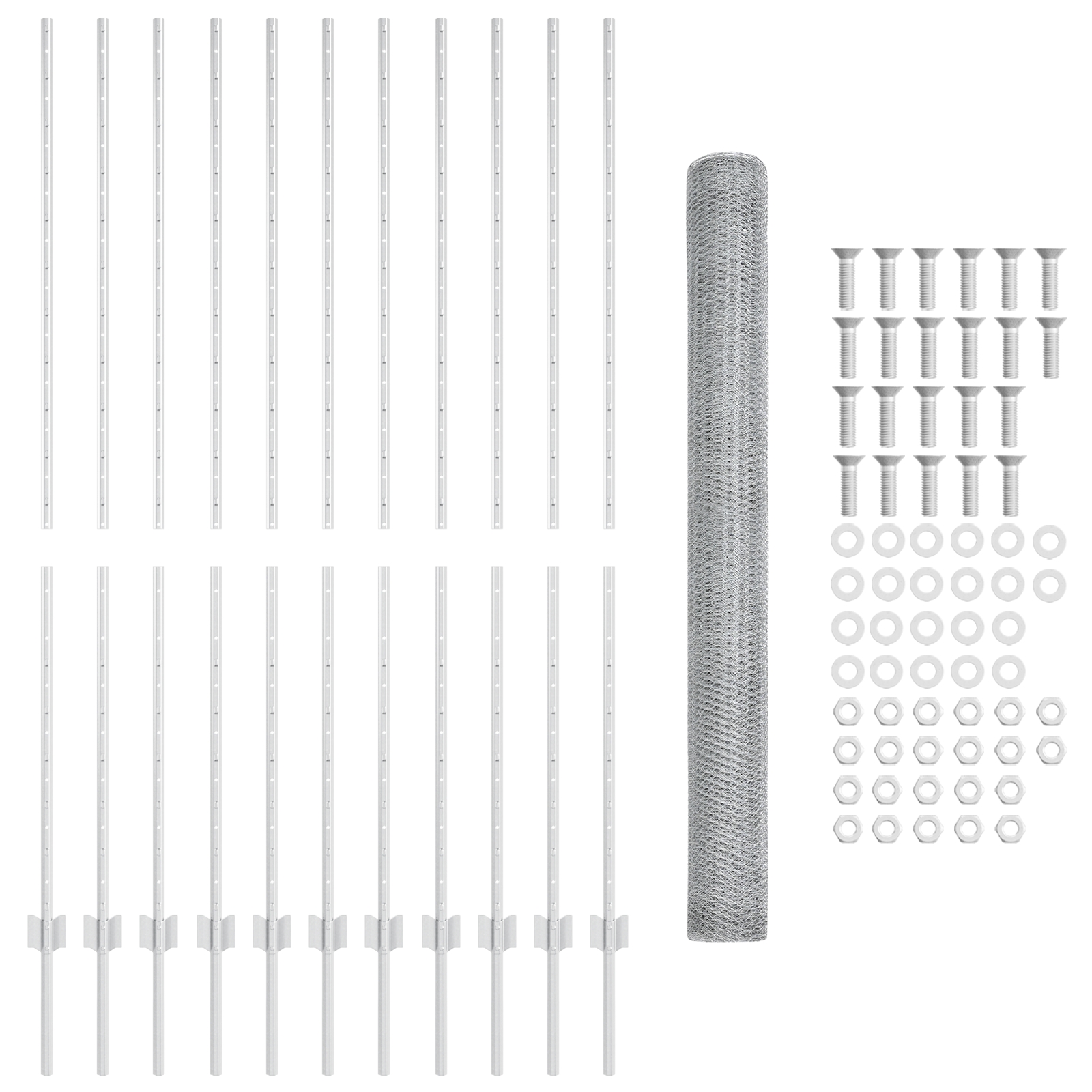 • Kompletná sada: Každý balík je súčasťou jednej rolky šesťuholníkovej siete a desiatich pevných stĺpikov, čo je ideálne pre väčšie priestory.