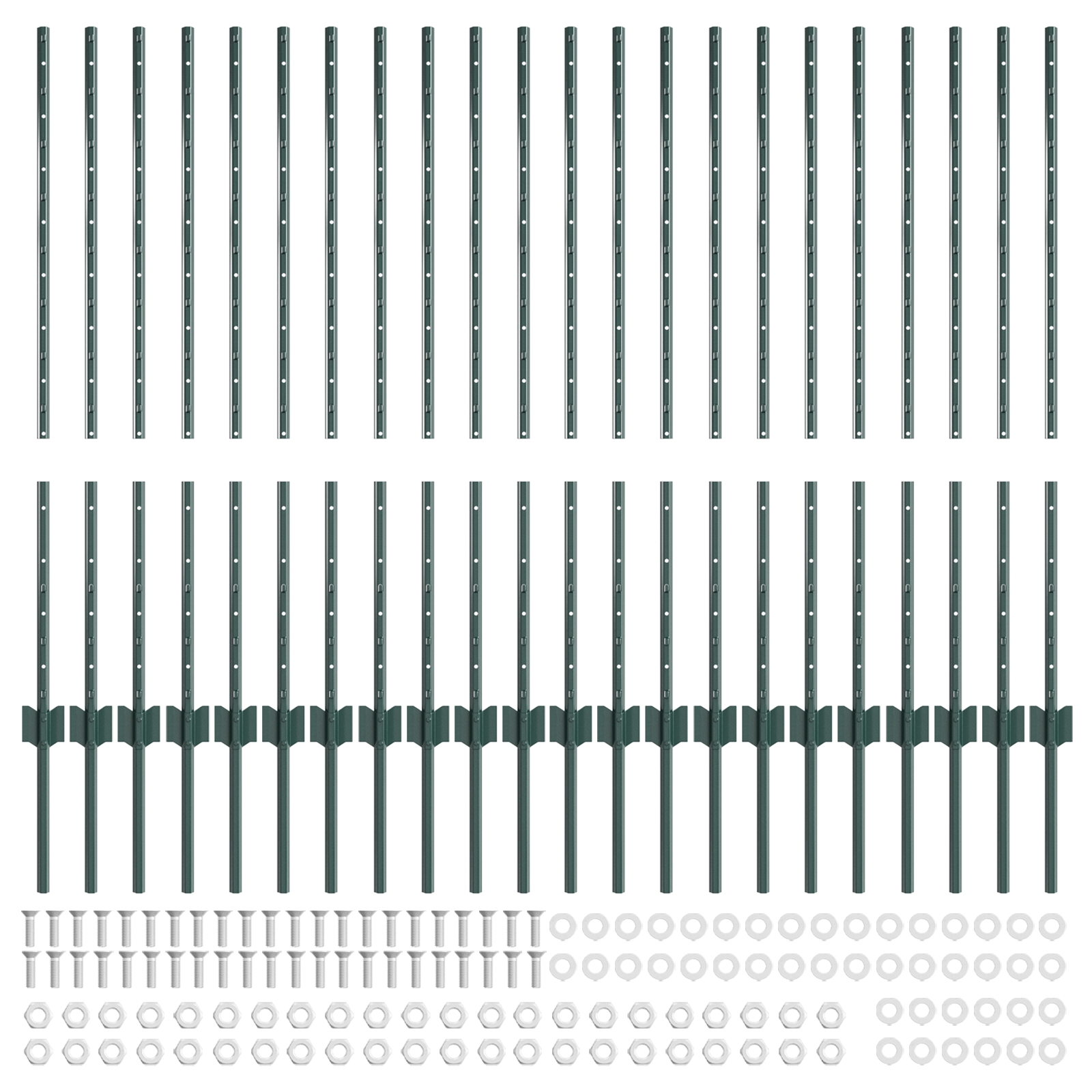 Tento set obsahuje 2 kovové plotové stĺpy, ideálne na vytvorenie pevného oplotenia. Sú natreté zelenou farbou pre klasický vzhľad a dlhú životnosť.