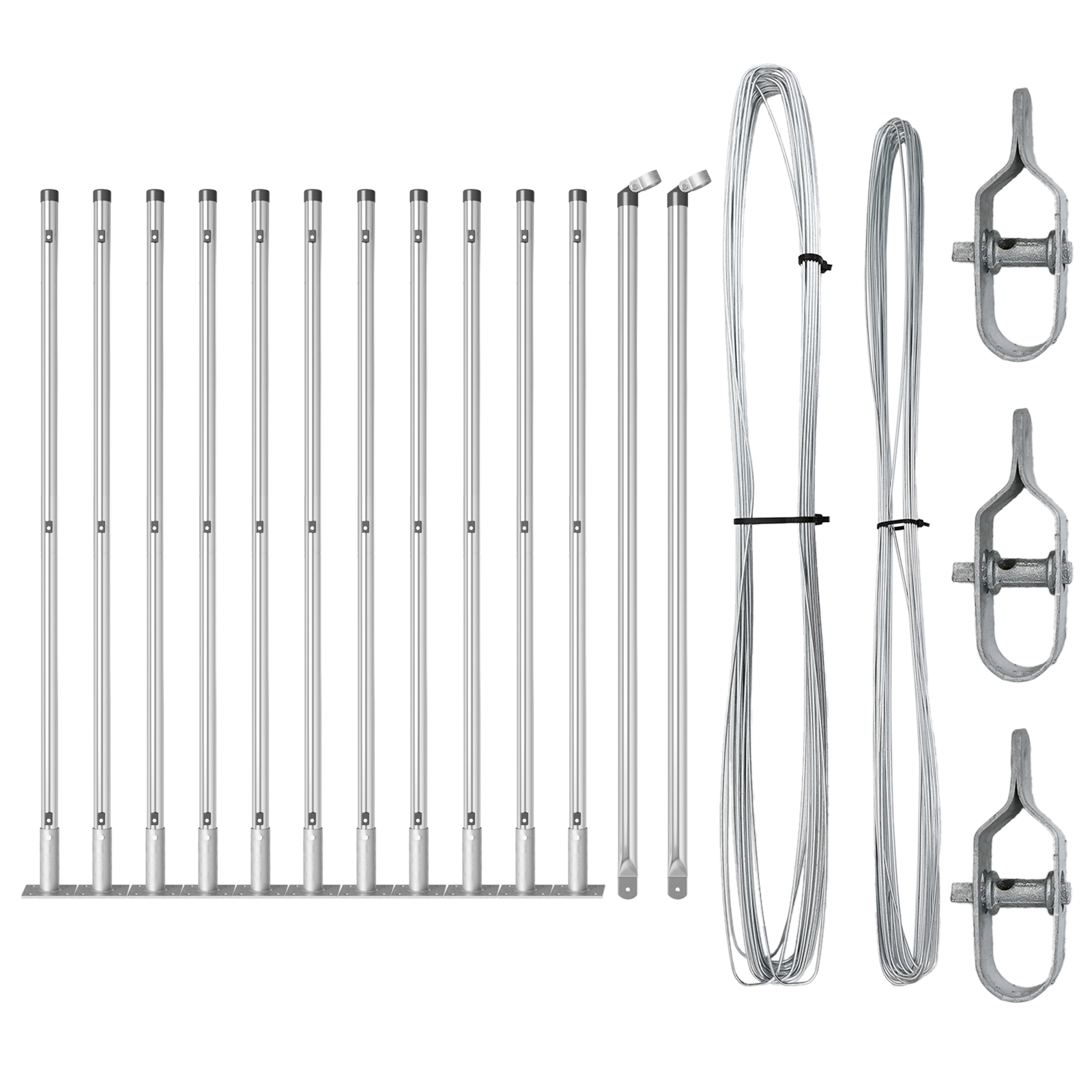• Obsah dodávky: 11 x Stĺp, 2 x Uhly, 11 x Základová doska, 11 x Plastová krytka, 33 x Plastový napínač drôtu, 2 x Kryt uhlového stĺpa, 2 x Príslušenstvo pre uhlový stĺp, 3 x Napínač, 1 x 25 m viazací drôt, 1 x 80 m napínací drôt