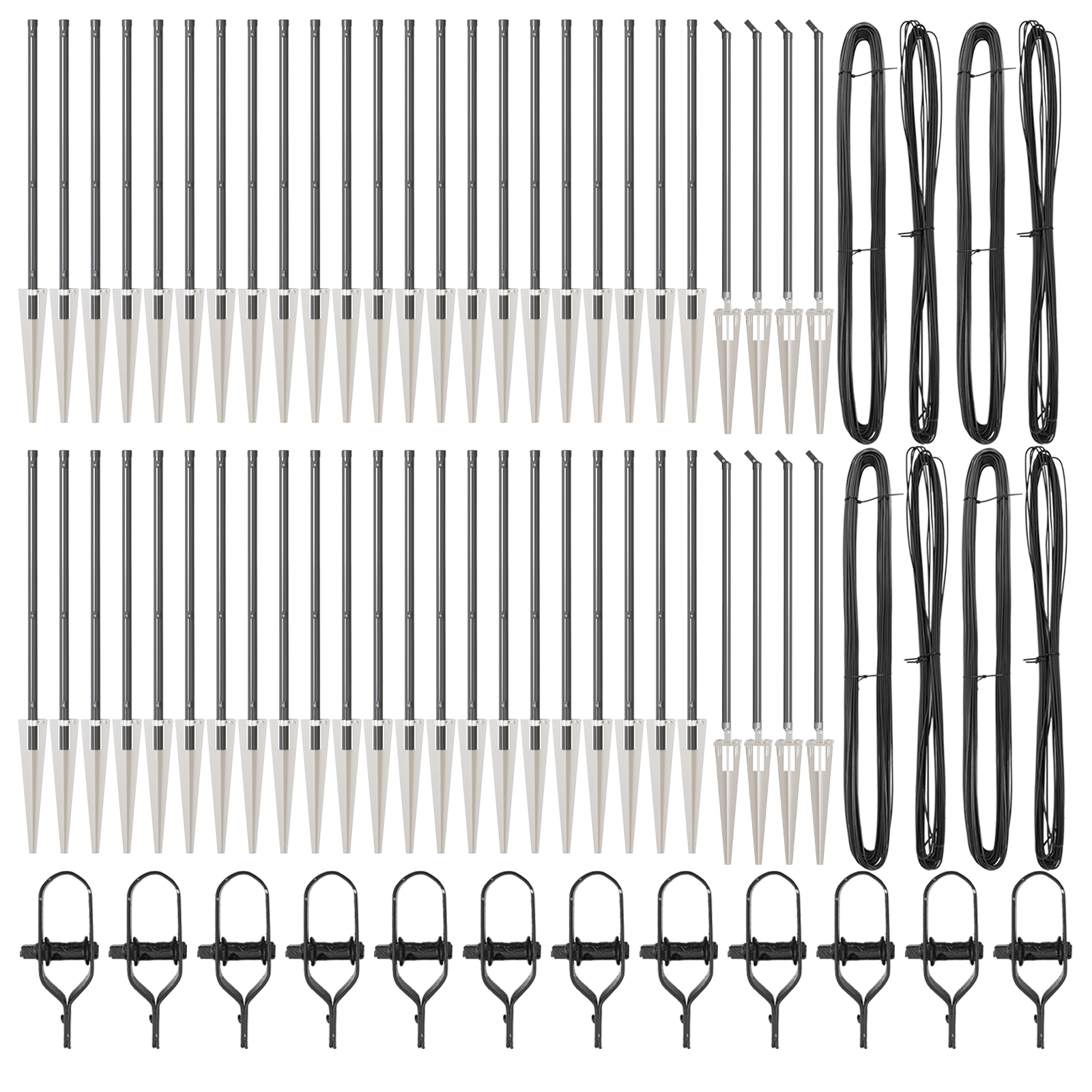 • Jednoduchá inštalácia: Tento stĺp prichádza s napínačmi, sponami a drôtmi, aby ste mohli jednoducho nastaviť vaše záhradné hranice.