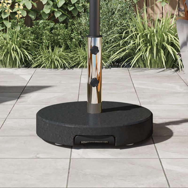 • Odolná konštrukcia: Navrhnutý tak, aby zvládol vonkajšie podmienky, tento podstavec drží väčšie slnečníky bezpečne na mieste bez prevrhnutia.