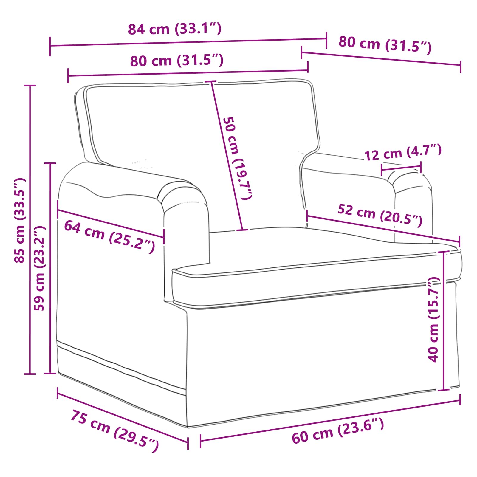 • 1 x sedacia súprava: 84 x 80 x 85 cm (ŠxHxV)