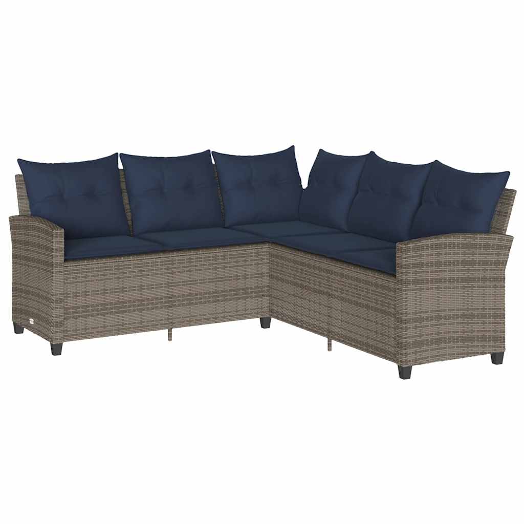 vidaXL Pohovka v tvare L s vankúšmi zo sivého polyratanu