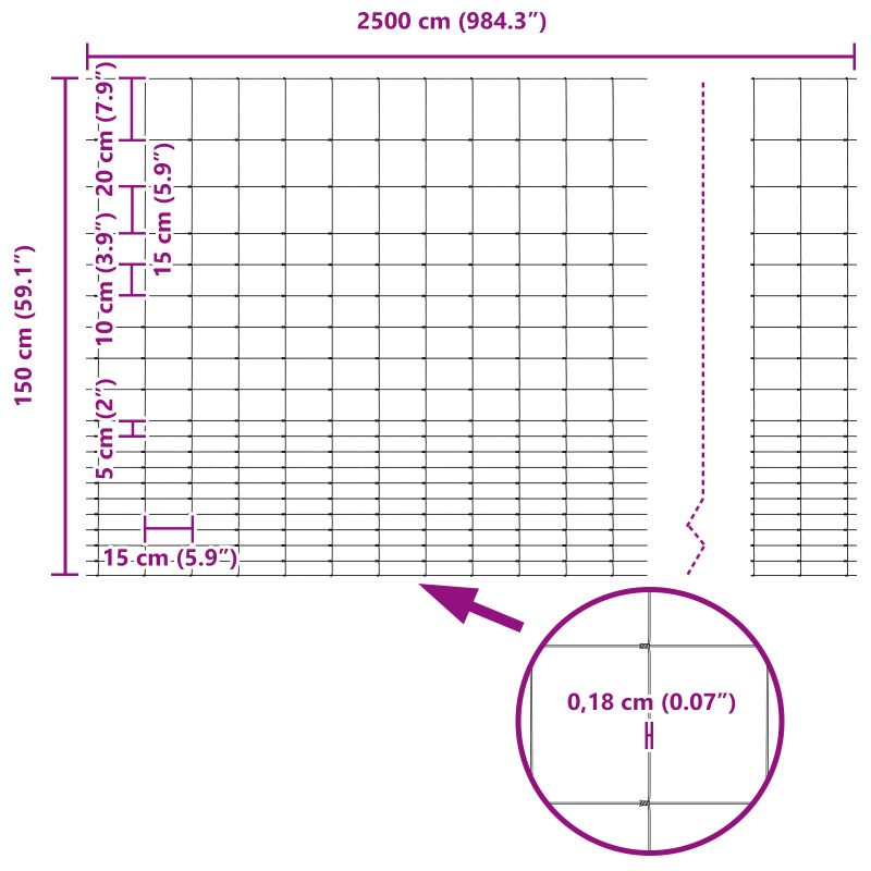Tento vidaXL Polní plot má silnú pozinkovanú oceľovú konštrukciu s elegantným strieborným povrchom, čo z neho robí nevyhnutnosť pre exteriérové ploty. Je vhodný do rôznych prostredí, poskytuje bezpečnosť a vylepšuje vzhľad vašich vonkajších priestorov.