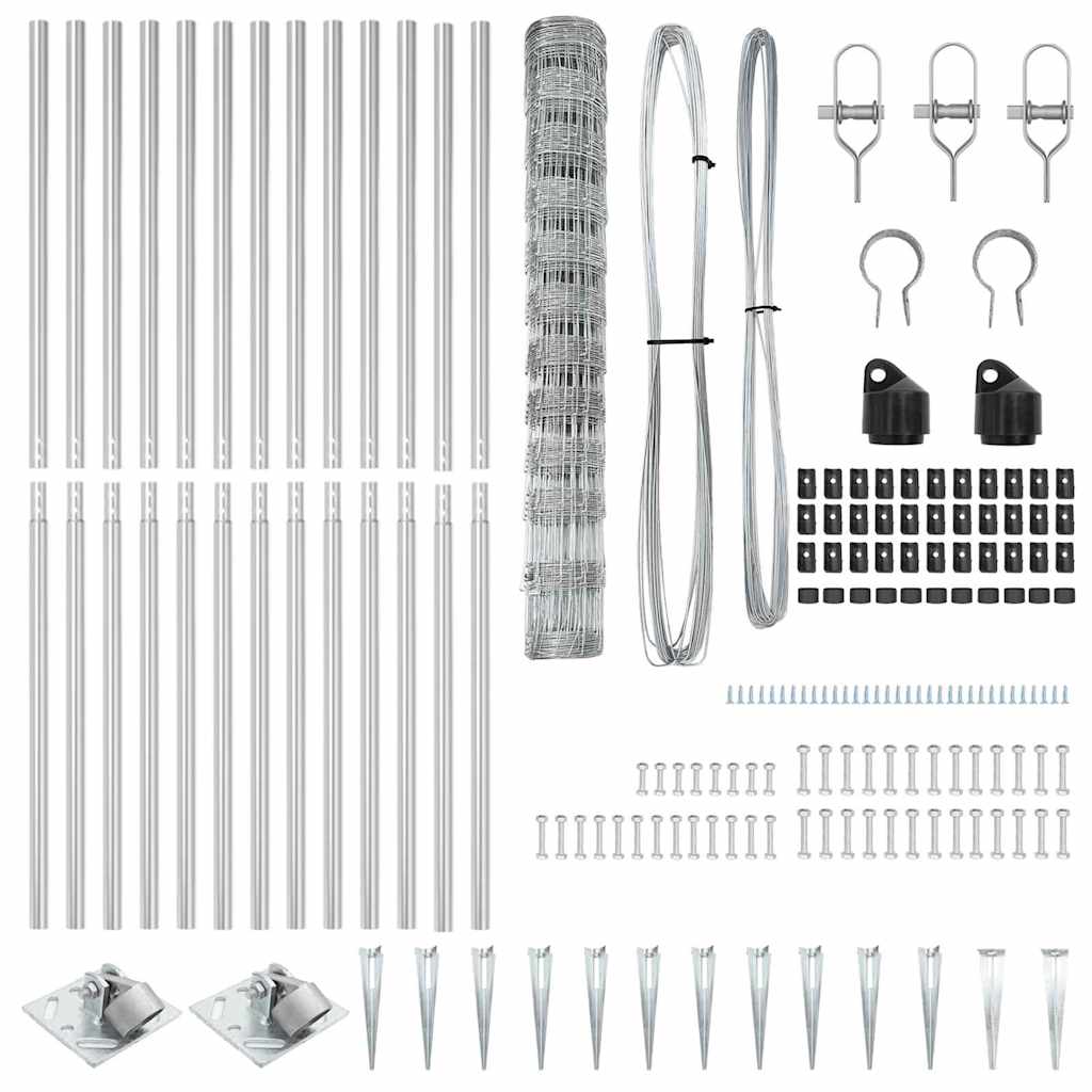 Tento vidaXL poľný plot kombinuje pevnú pozinkovanú oceľ s reálnou praktickosťou, takže je výbornou voľbou pre vonkajšie prekážky. Jeho elegantné šedé prevedenie a silná konštrukcia oživujú váš vonkajší priestor a sú ideálne pre domy, záhrady, farmy a podobne.